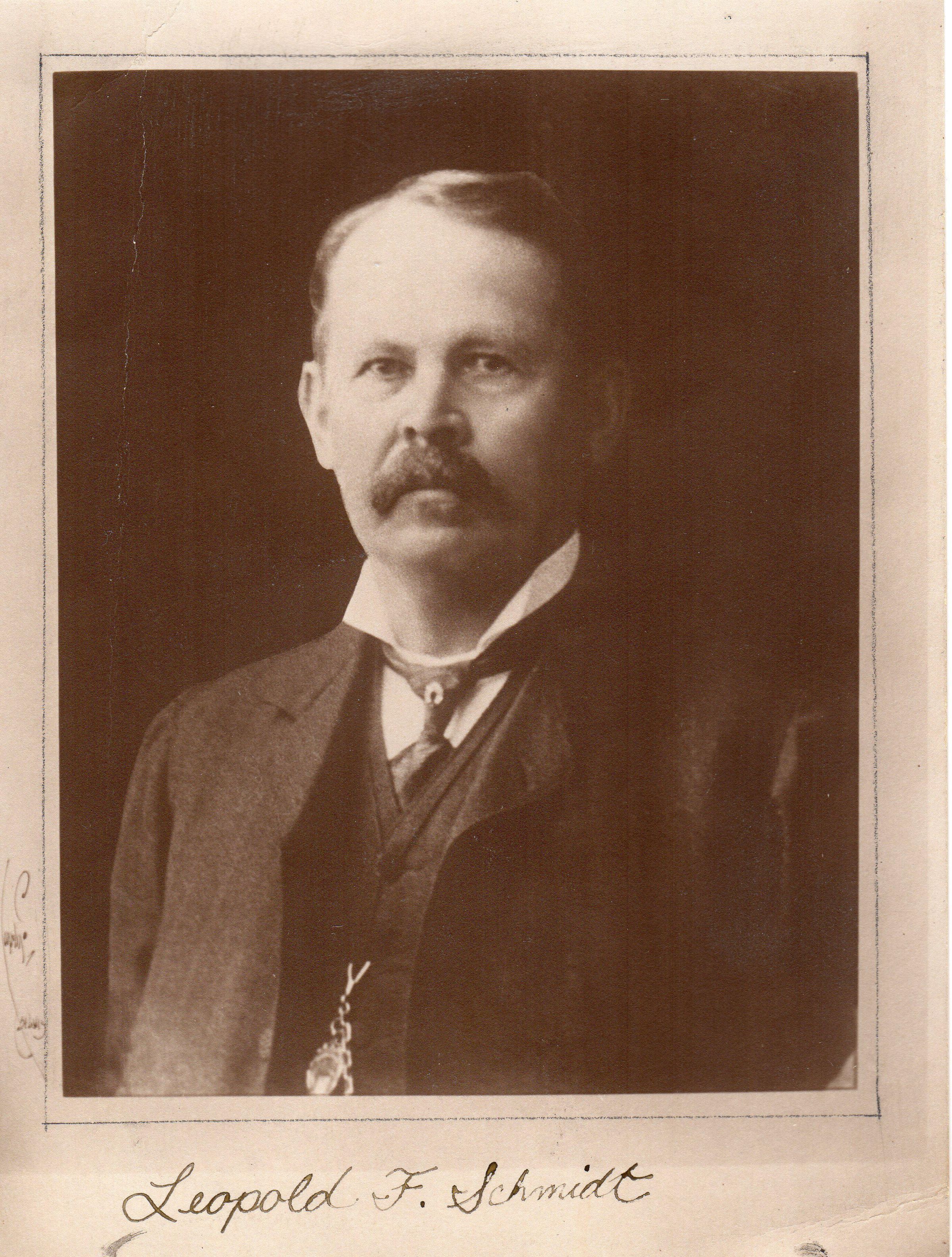 Print, photographic. 4 1/2 x 6 sepia. Image of Leopold F. Schmidt as middle-aged man.