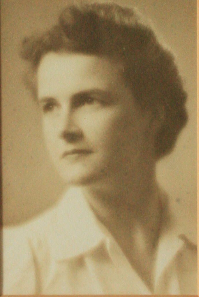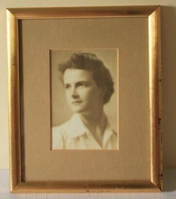 Photograph. 3 x 4 1/2, b&w image, in mat and gold frame, 6 3/4 x 8 overall. Portrait of Mildred Schmidt Neal Parker as young woman.