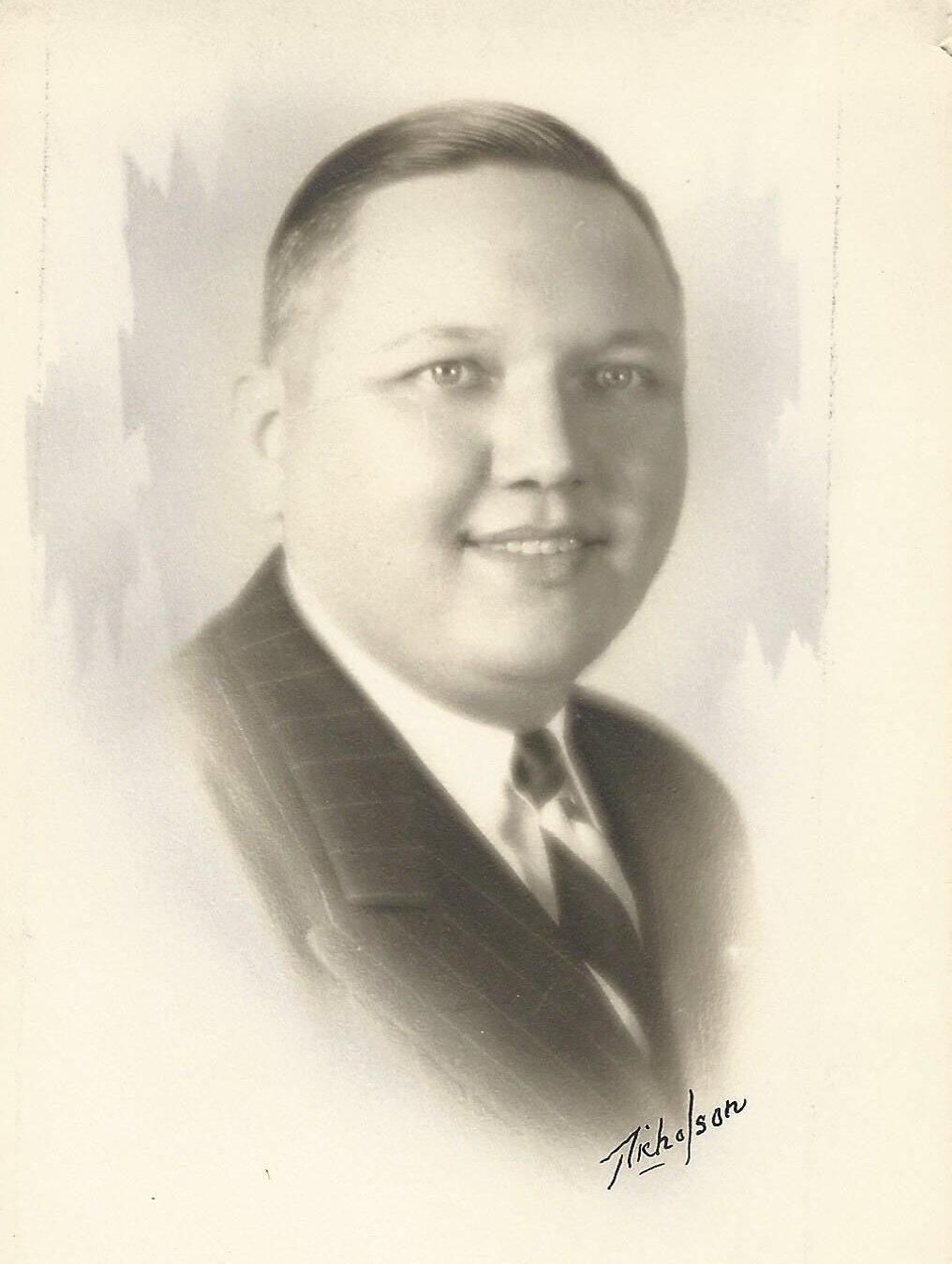 Photograph. 3 1/2 x 5 b&w. Studio portrait of Jack Neal. Taken during his marriage to Mildred Schmidt.