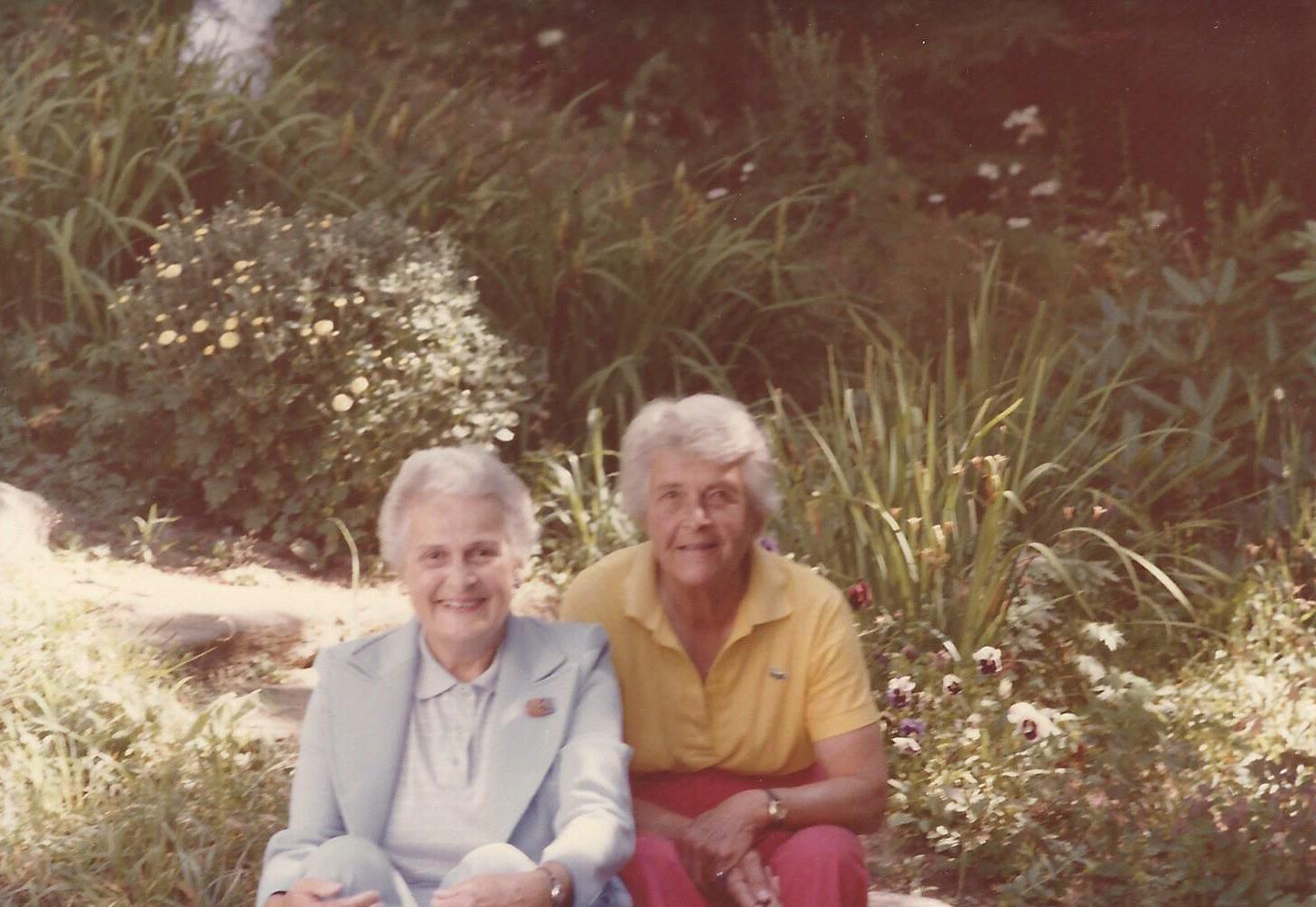 Photograph. 5 x 3 1/2 color. Louise Schmidt and Mildred Parker in Vermont in 1982.