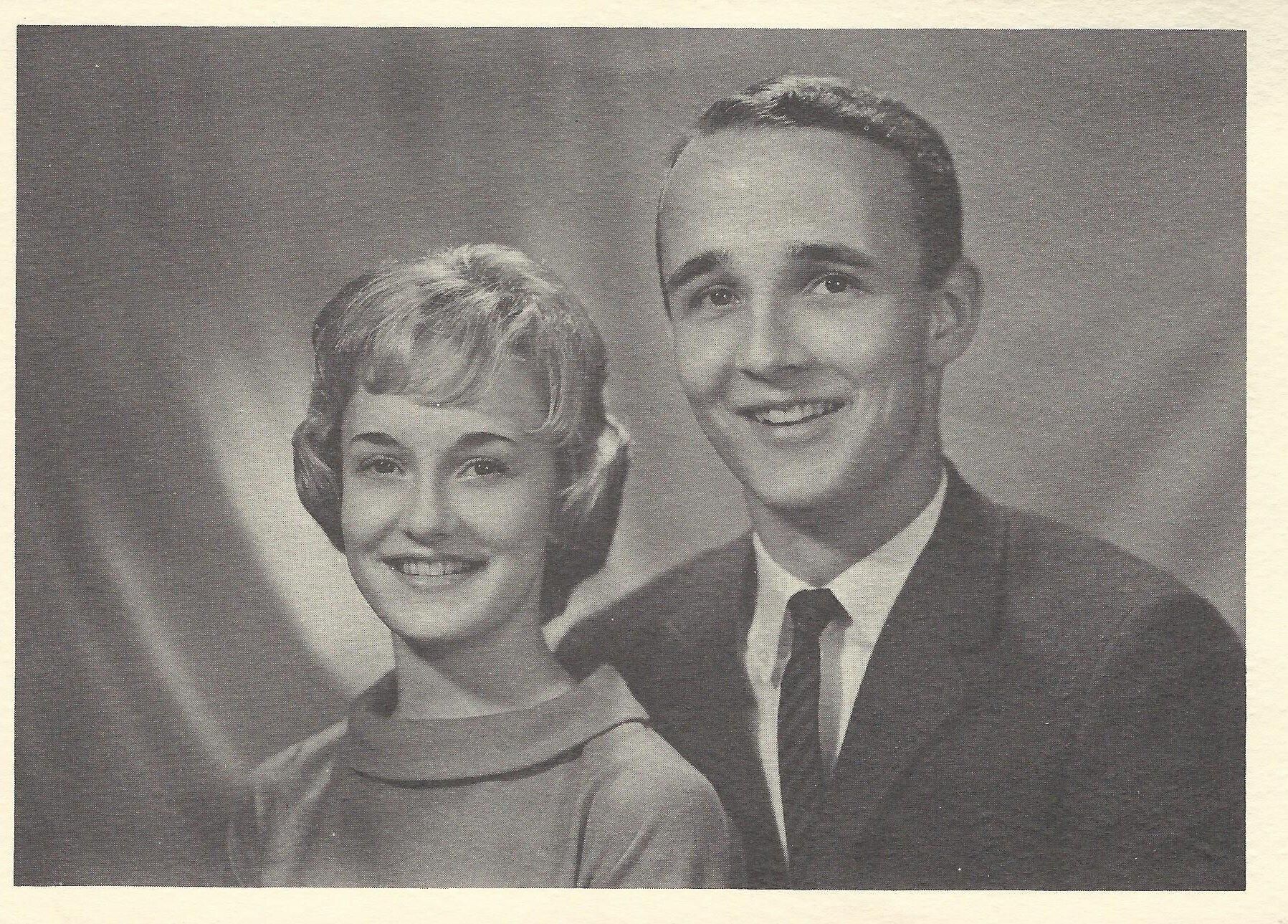 Photograph. 6 x 4 1/2 b&w, on Christmas card. Portrait of Judie and Nick Schmidt, children of Virginia and Trueman "Bink" Schmidt.