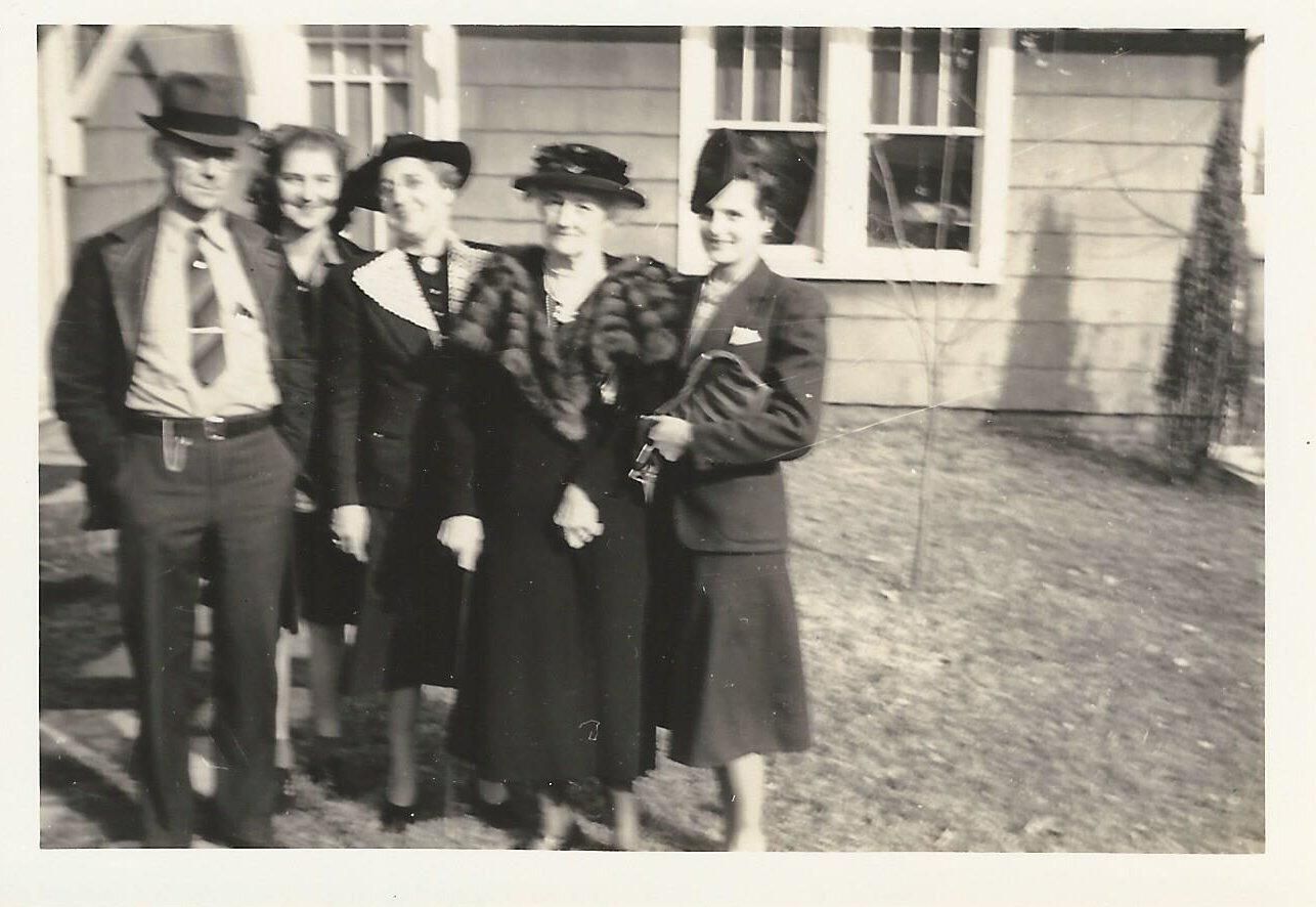 Photograph. 4 1/2 x 3 b&w. Photo of a man and 4 women. No ID on people or location.