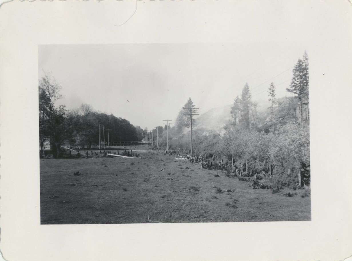 Print, photographic. 4 x 3 b&w. Construction of can line and warehouse on east side of main brewery and Carlyon Bridge. Fill job. Top of hill from well. May 11, 1953.
