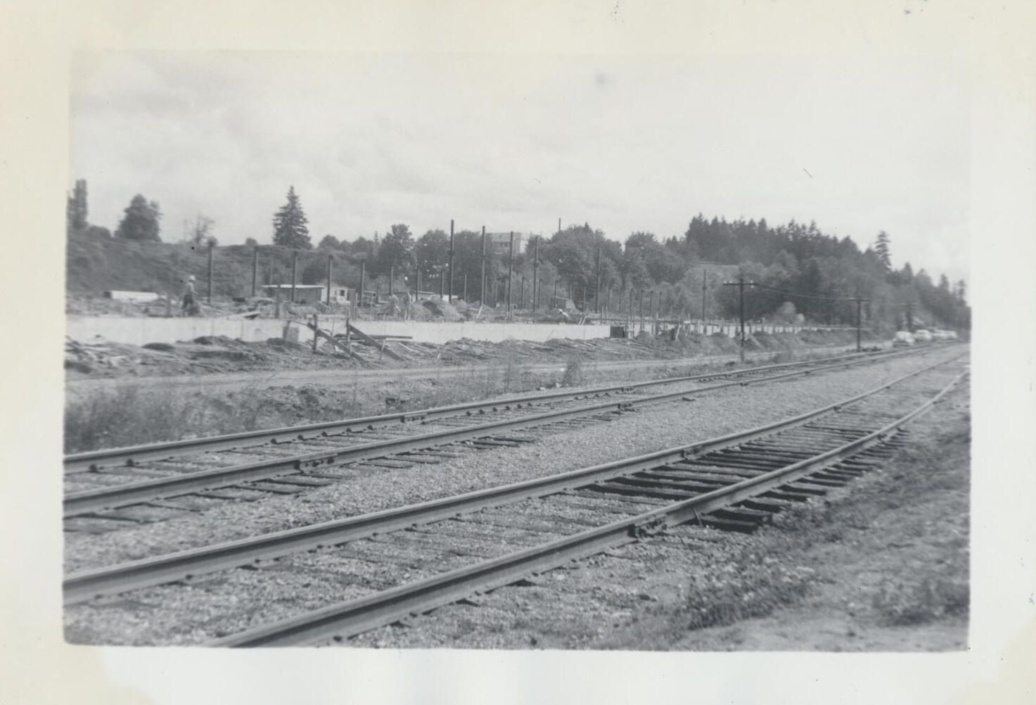 Print, photographic. 5 x 3 1/2 b&w. Construction of can line and warehouse on east side of main brewery and Carlyon Bridge. Warehouse. September 15, 1954.