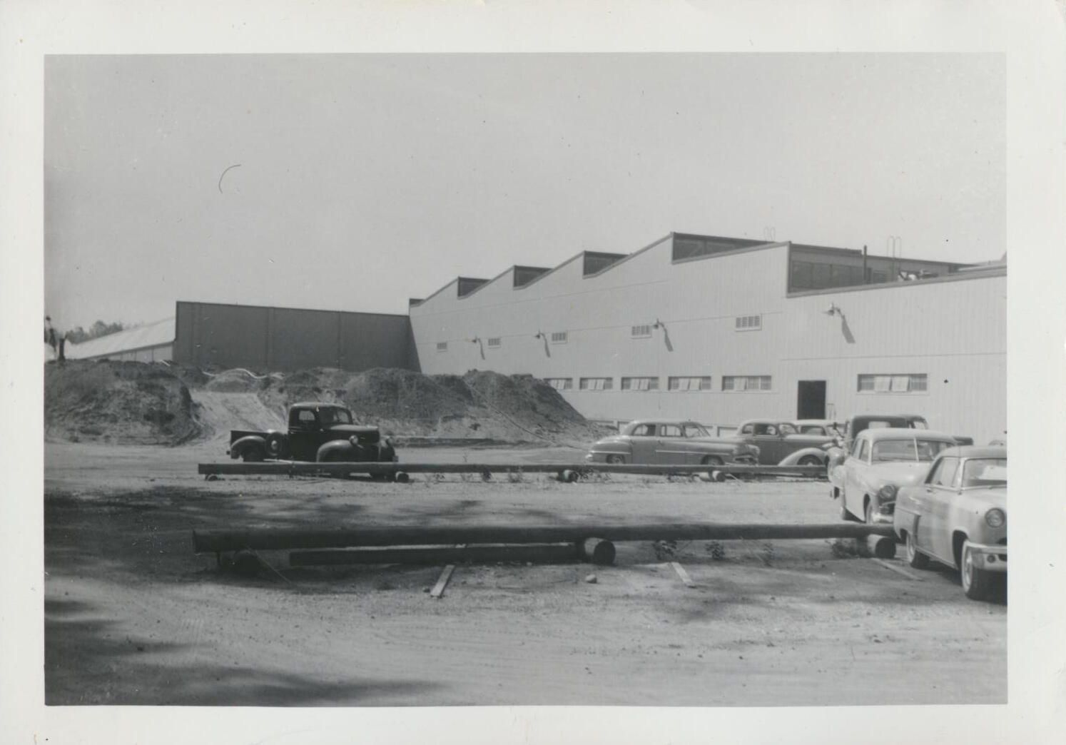 Print, photographic. 5 x 3 1/2 b&w. Construction of can line and warehouse on east side of main brewery and Carlyon Bridge. Warehouse addition. August 20, 1956.