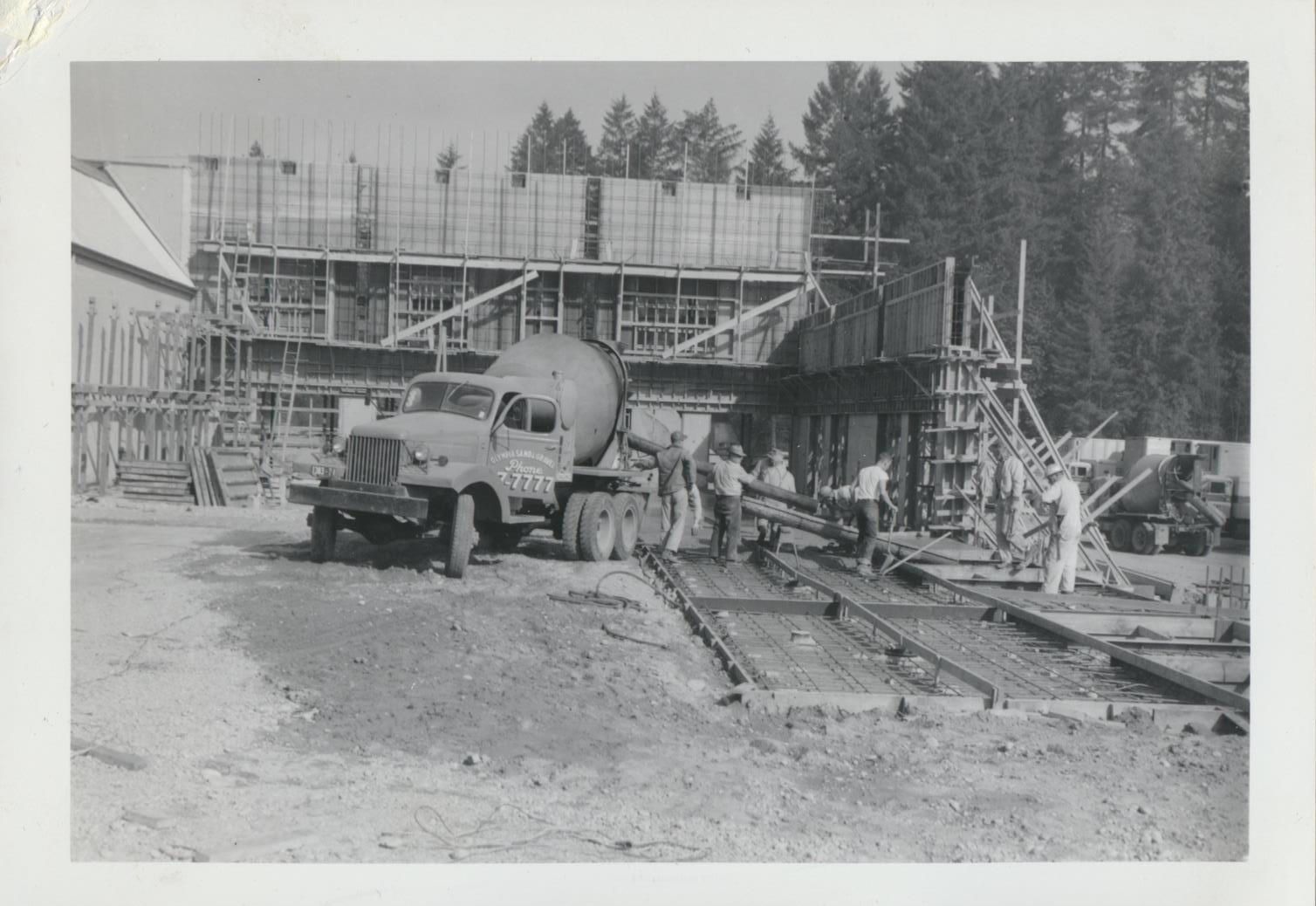 Print, photographic. 5 x 3 1/2 b&w. Construction of can line and warehouse on east side of main brewery and Carlyon Bridge. Warehouse floor. September 22, 1956.
