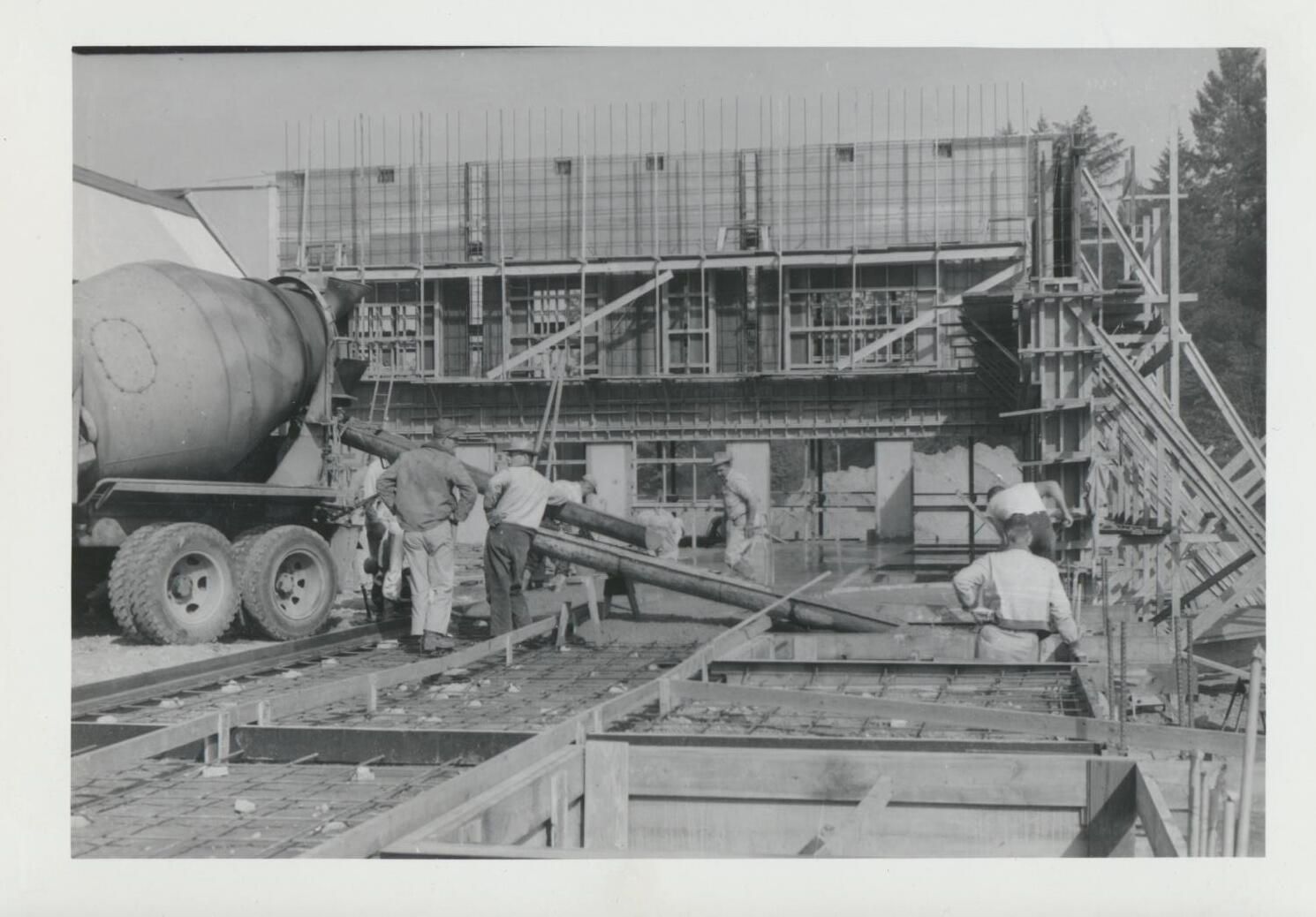 Print, photographic. 5 x 3 1/2 b&w. Construction of can line and warehouse on east side of main brewery and Carlyon Bridge. Warehouse floor. September 22, 1956.