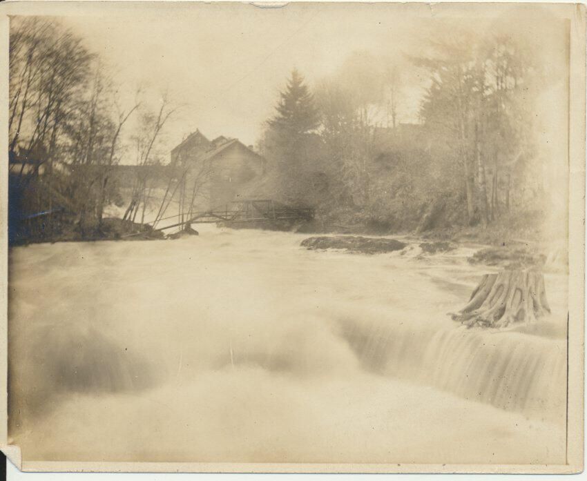 Print, photographic (2). 5 x 4 b&w. Tumwater Rapids, shows high water on Deschutes River, 1897.