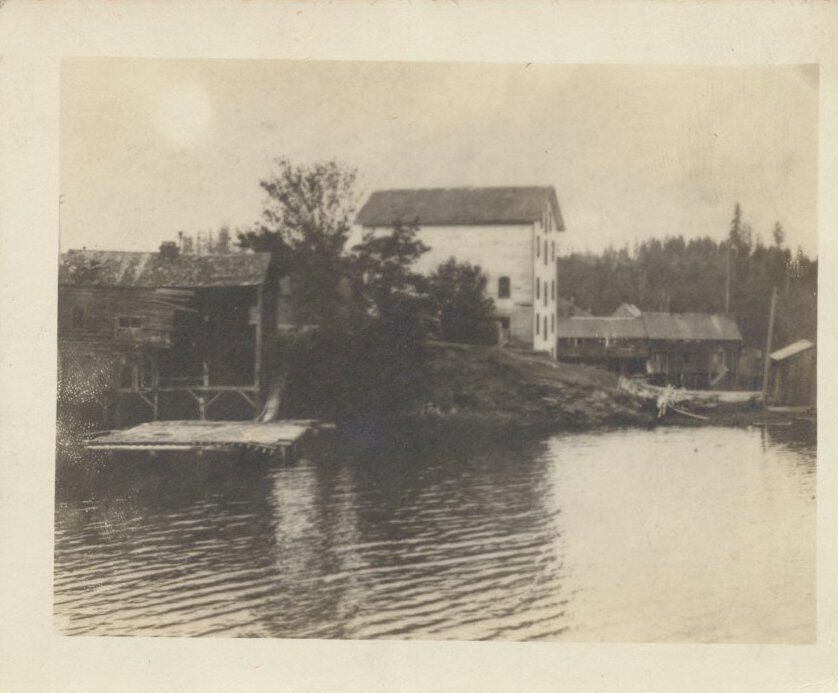 Print, photographic (2). 5 x 4 b&w. View of Crosby's Lincoln Flour Mill, built circa 1865, burned in 1905.