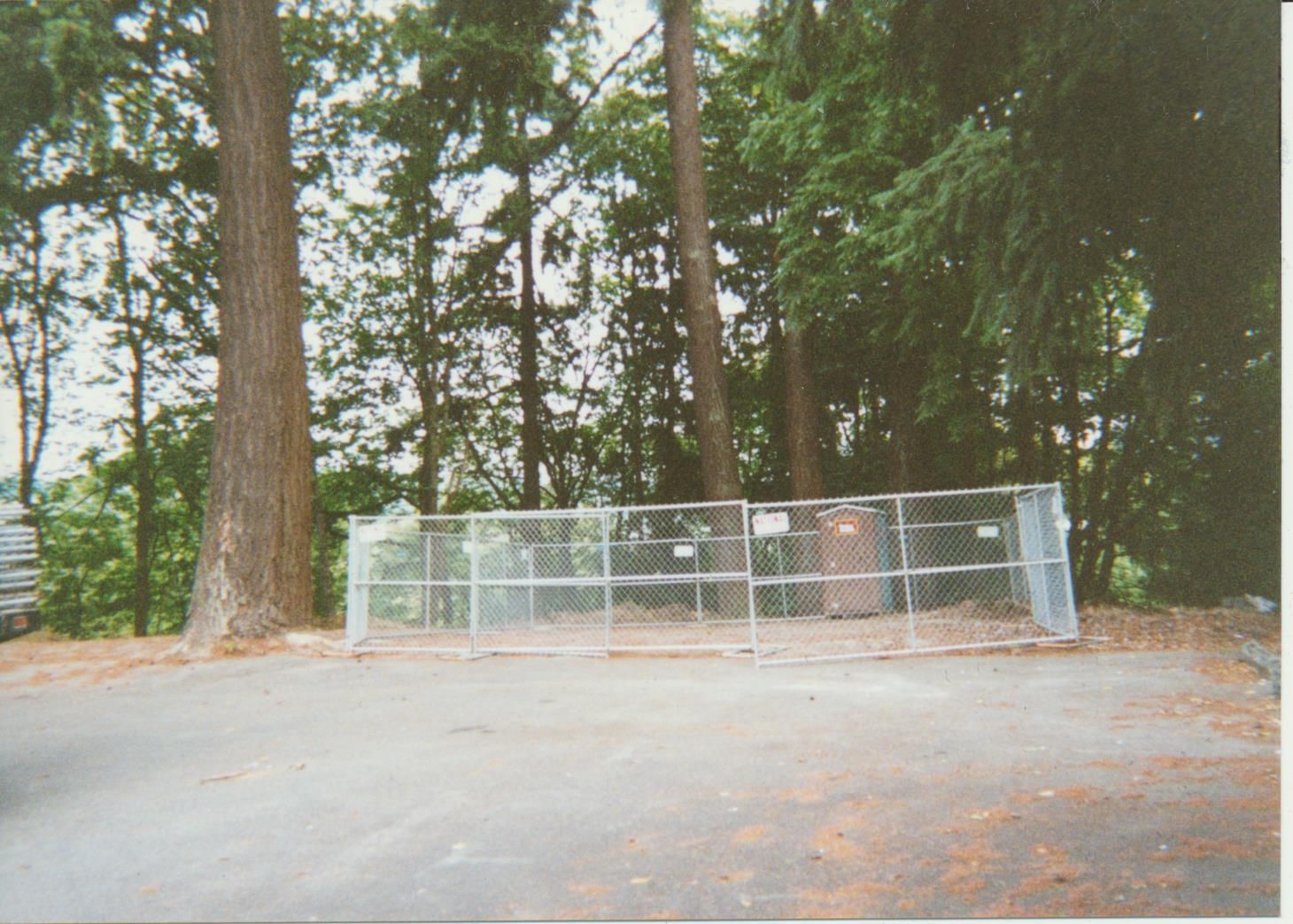 Photograph. 4 3/4 x 3 1/2 color. Schmidt House restoration done in September 2001. Photo by Vida Zvirzdys-Farler. View of construction fencing.