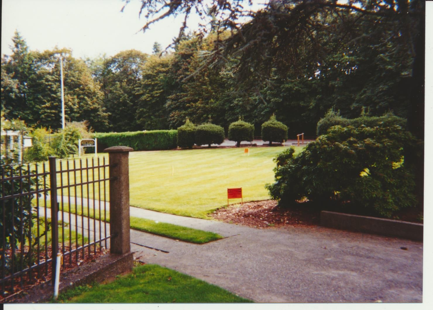 Photograph. 4 3/ 4 x 3 1/2 color. Schmidt House restoration done in September 2001. Photo by Vida Zvirzdys-Farler. View of southeast yard from driveway.