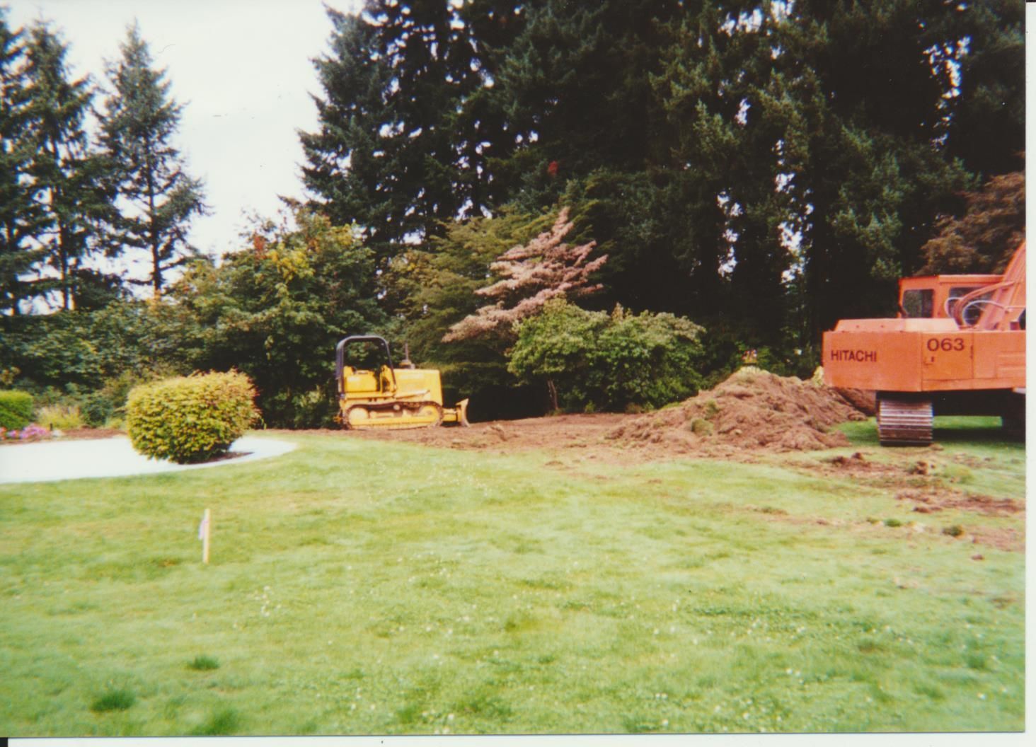 Photograph. 4 3/ 4 x 3 1/2 color. Schmidt House restoration done in September 2001. Photo by Vida Zvirzdys-Farler. Bulldozer moving dirt in northeast yard.