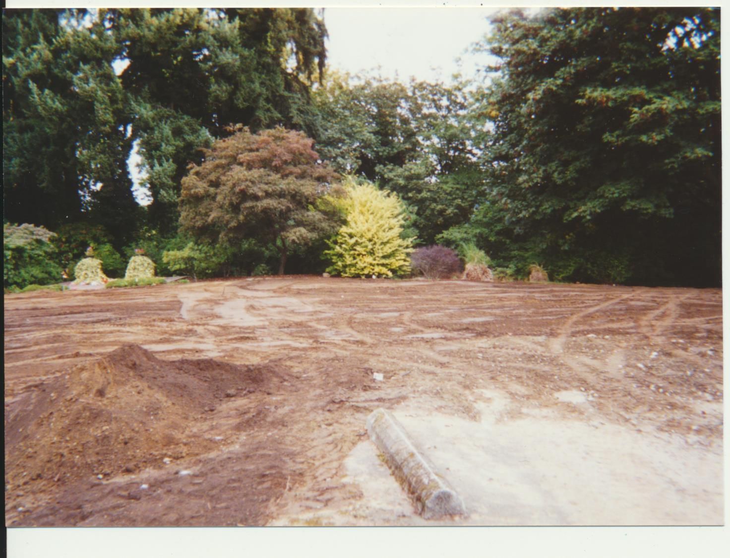 Photograph. 4 3/ 4 x 3 1/2 color. Schmidt House restoration done in September 2001. Photo by Vida Zvirzdys-Farler. Dirt work in northeast yard.