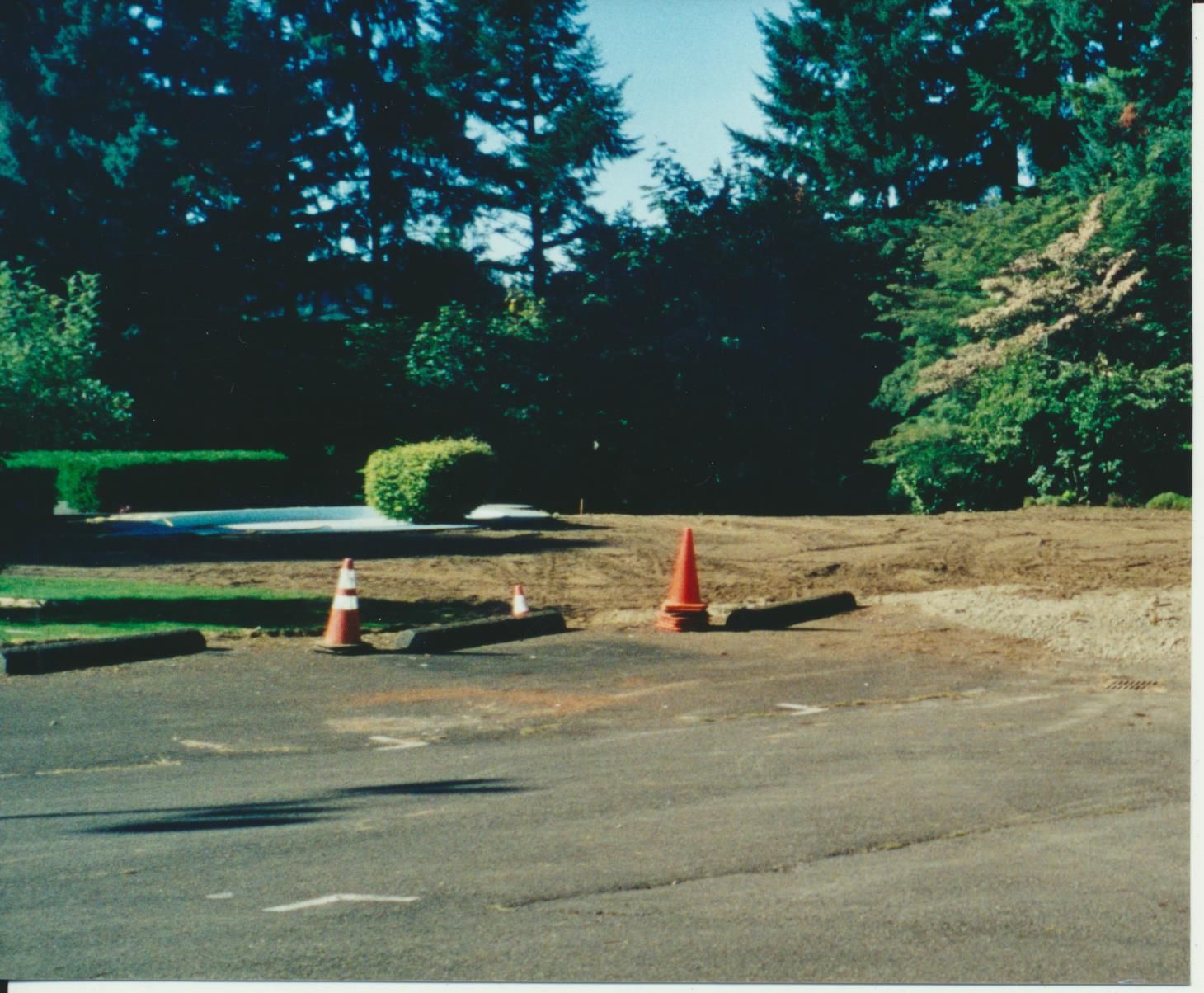 Photograph. 4 3/ 4 x 3 1/2 color. Schmidt House restoration done in September 2001. Photo by Vida Zvirzdys-Farler. East parking lot.