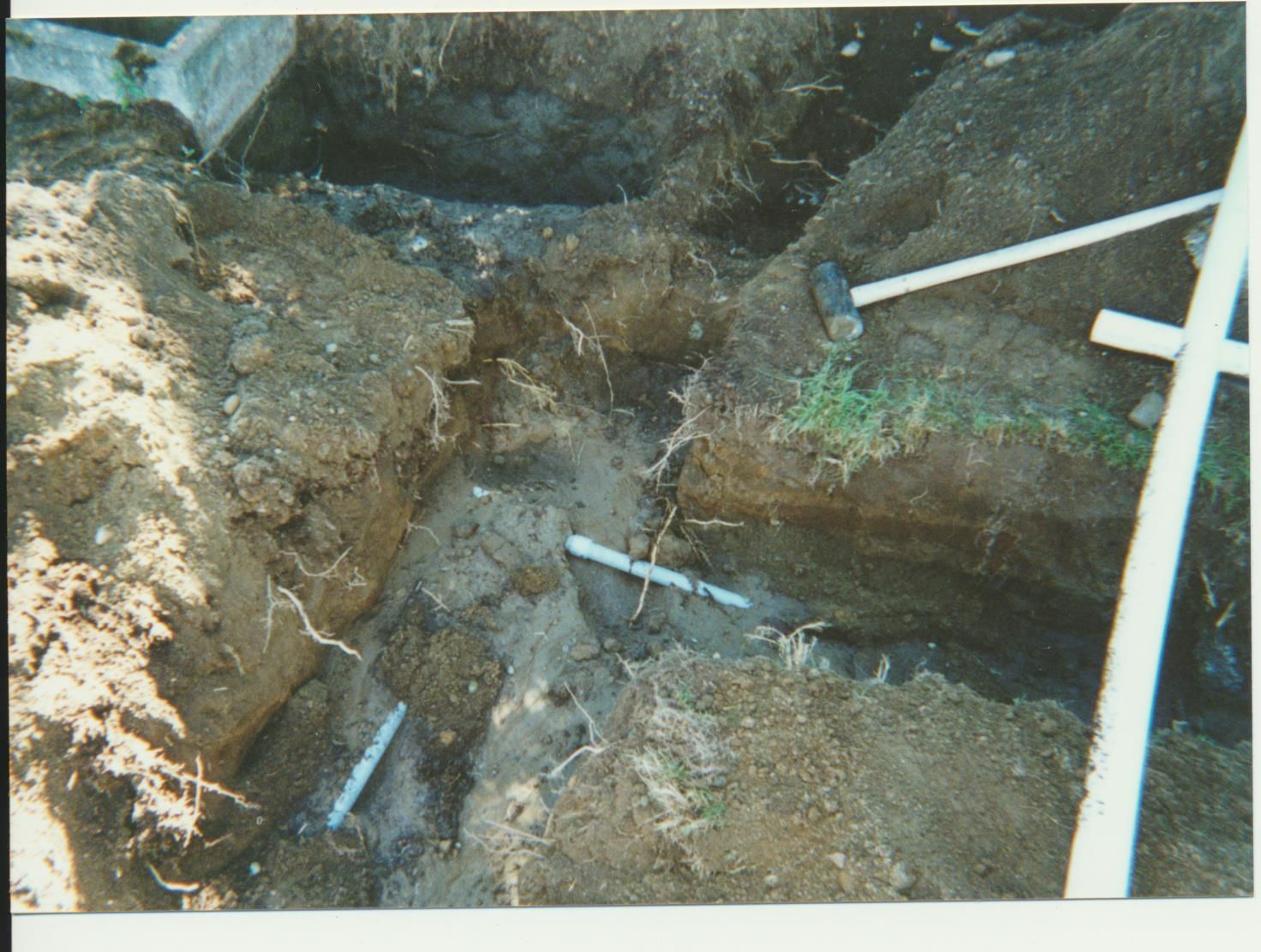 Photograph. 4 3/ 4 x 3 1/2 color. Schmidt House restoration done in September 2001. Photo by Vida Zvirzdys-Farler. Irrigation system for back lawn and newly planted hedge.