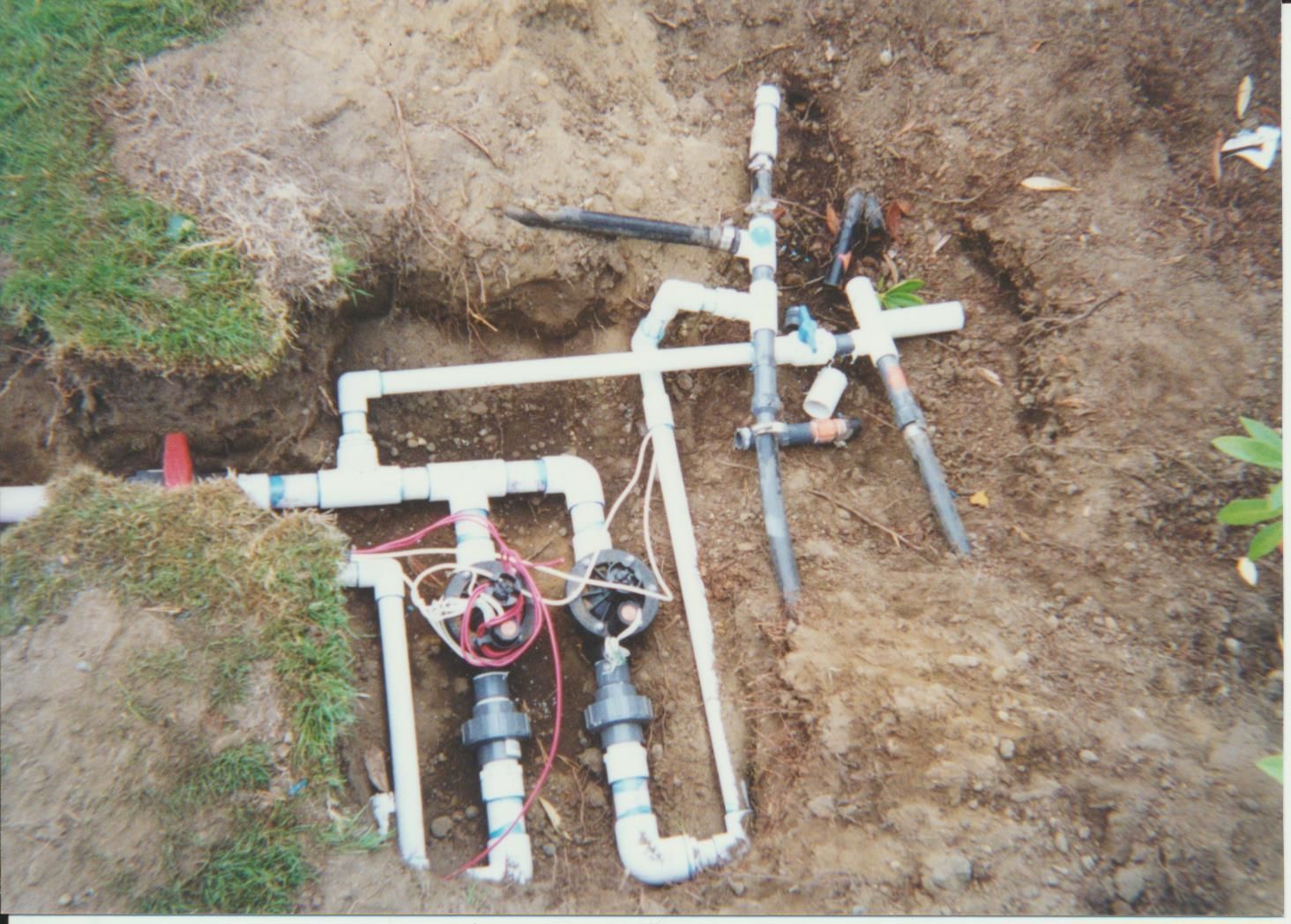 Photograph. 4 3/ 4 x 3 1/2 color. Schmidt House restoration done in September 2001. Photo by Vida Zvirzdys-Farler. Irrigation work around storage shed.