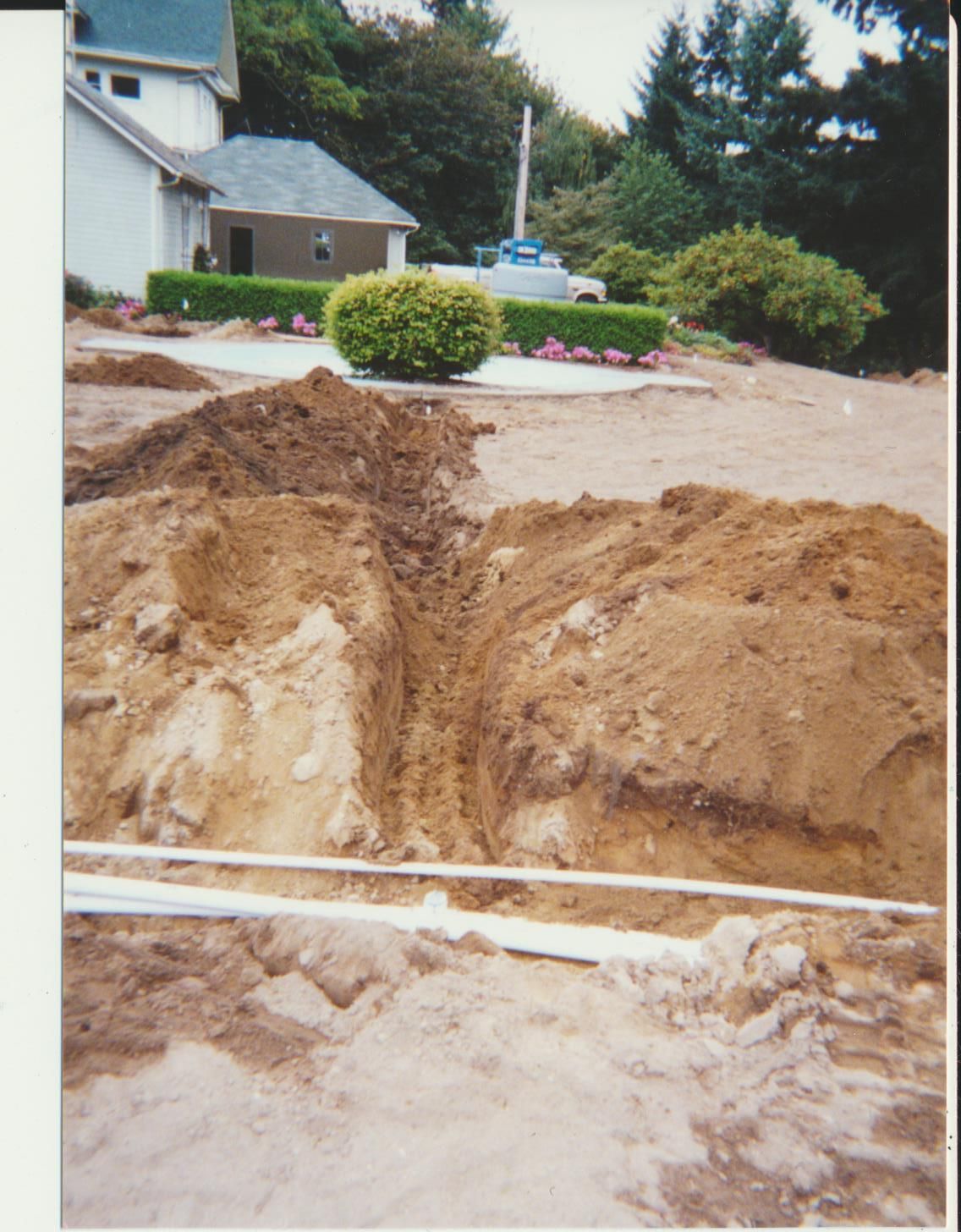 Photograph. 4 3/ 4 x 3 1/2 color. Schmidt House restoration done in September 2001. Photo by Vida Zvirzdys-Farler. Irrigation work around storage shed.