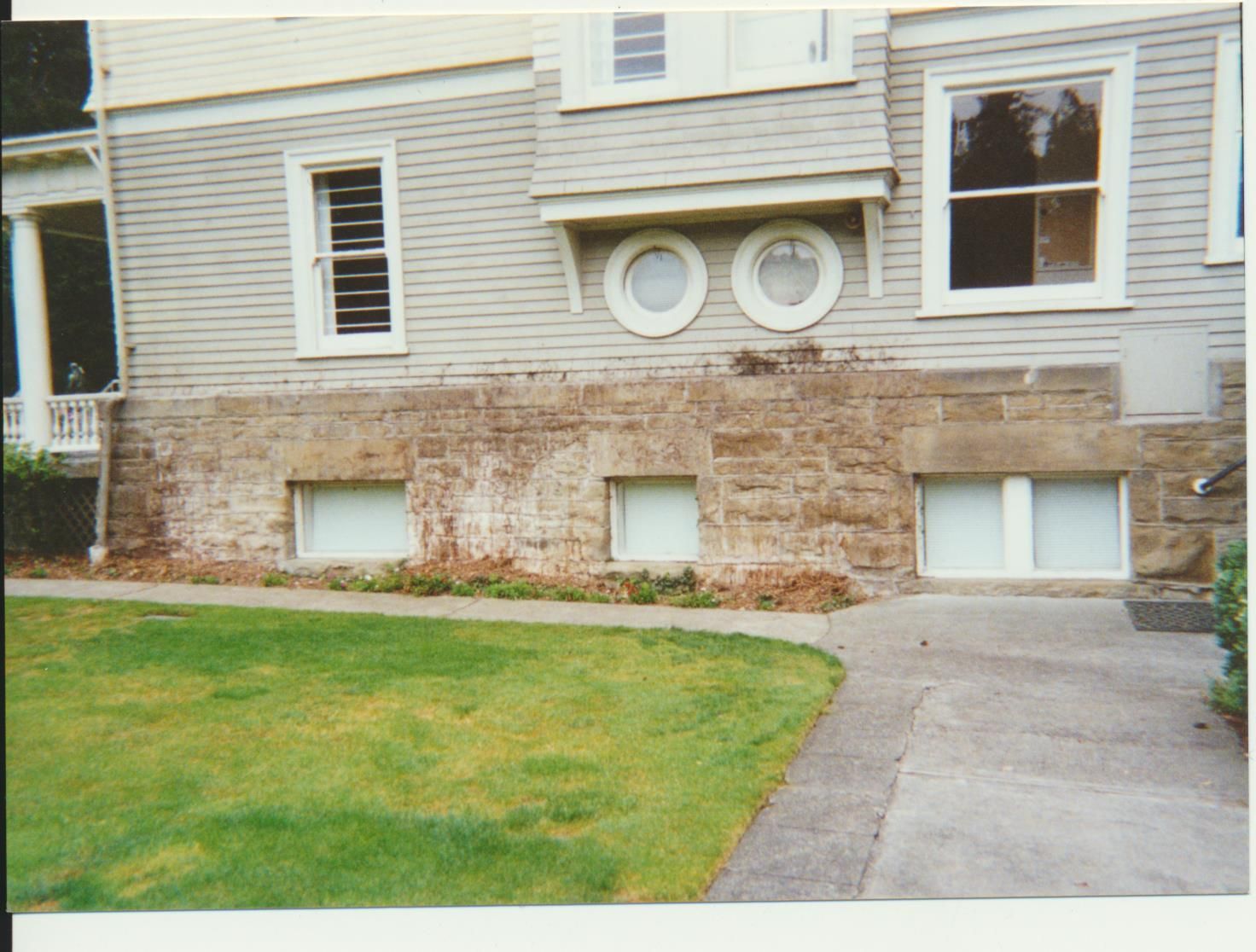Photograph. 4 3/ 4 x 3 1/2 color. Schmidt House restoration done in October 2001. Photo by Vida Zvirzdys-Farler. East side of house after ivy removal.