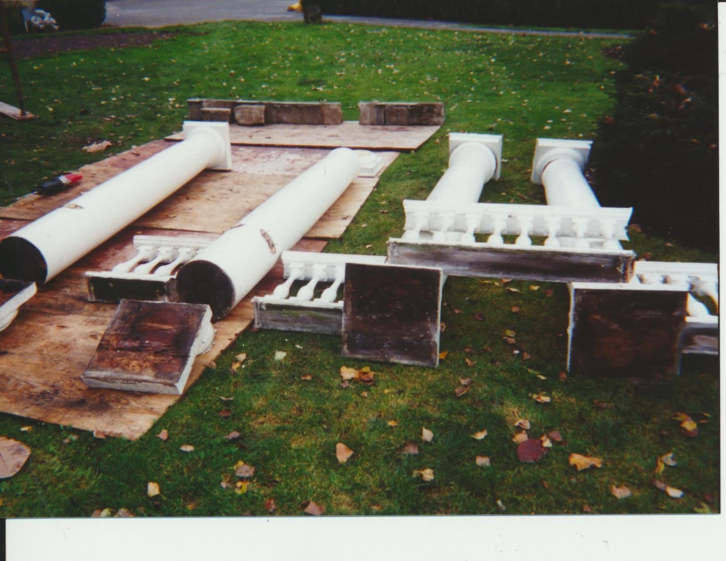 Photograph. 4 3/ 4 x 3 1/2 color. Schmidt House restoration done in December 2001. Photo by Vida Zvirzdys-Farler. Front view of house, porch reconstruction.