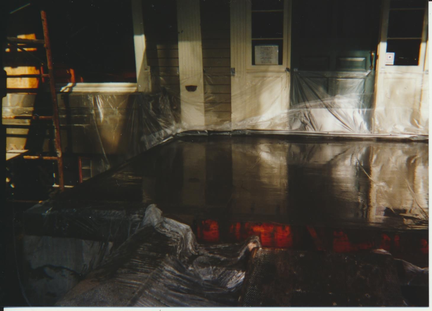 Photograph. 4 3/ 4 x 3 1/2 color. Schmidt House restoration done in December 2001. Photo by Vida Zvirzdys-Farler. Front view of house, porch reconstruction.