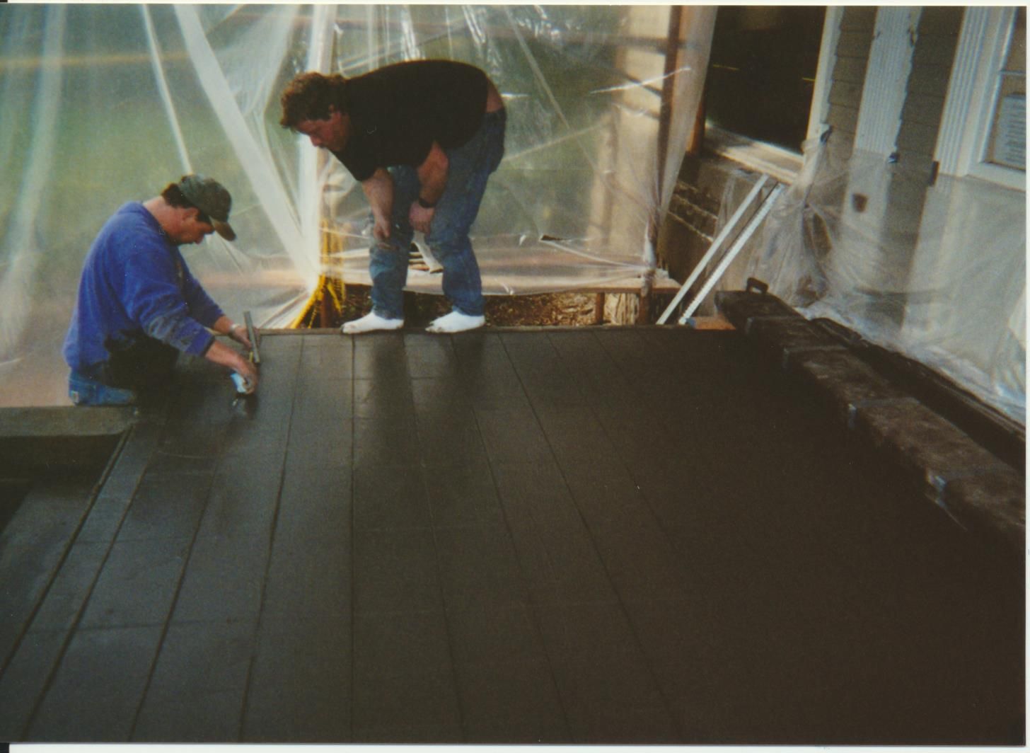 Photograph. 4 3/ 4 x 3 1/2 color. Schmidt House restoration done in December 2001. Photo by Vida Zvirzdys-Farler. Front view of house, porch reconstruction.
