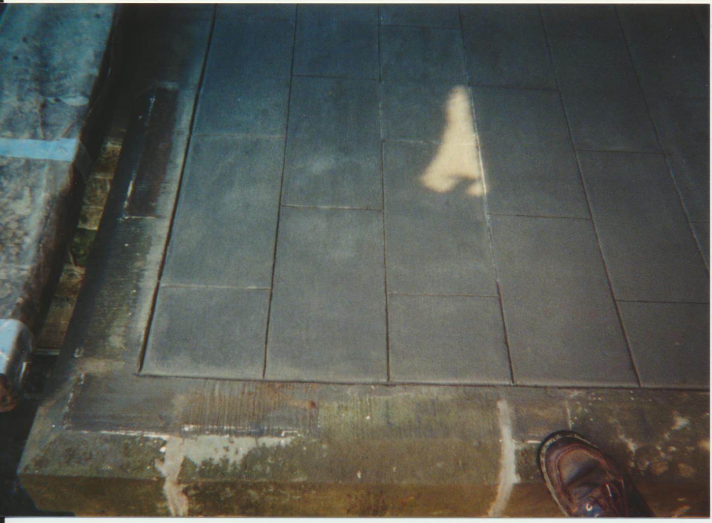 Photograph. 4 3/ 4 x 3 1/2 color. Schmidt House restoration done in December 2001. Photo by Vida Zvirzdys-Farler. Front view of house, porch reconstruction.
