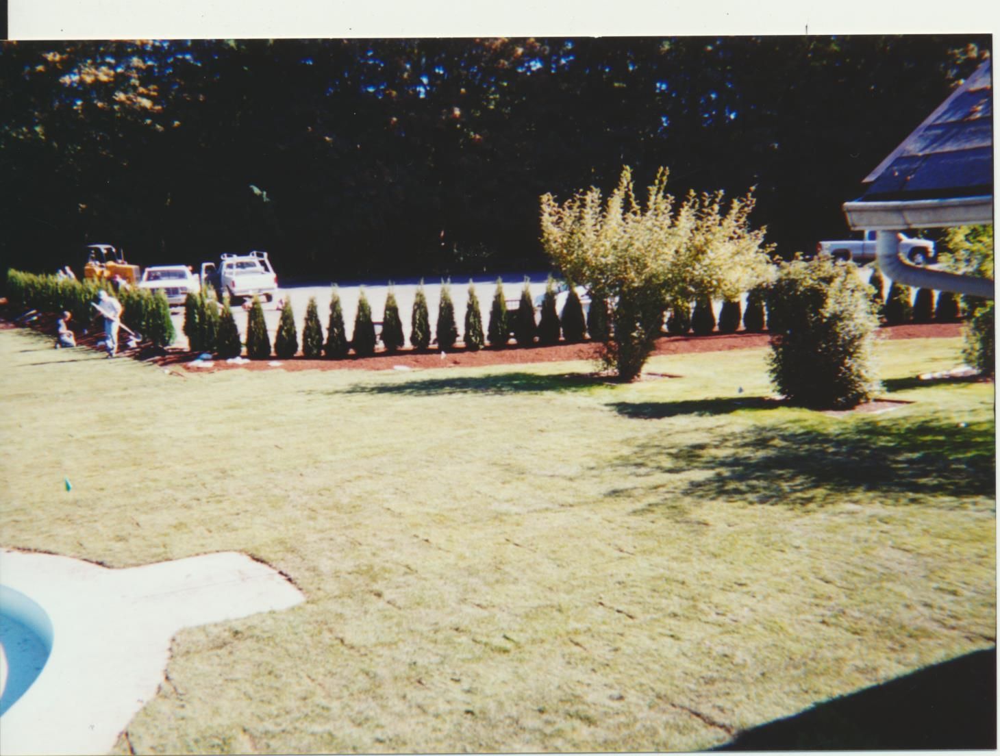 Photograph. 4 3/ 4 x 3 1/2 color. Schmidt House restoration done in December 2001. Photo by Vida Zvirzdys-Farler. View of northeast yard by pool.