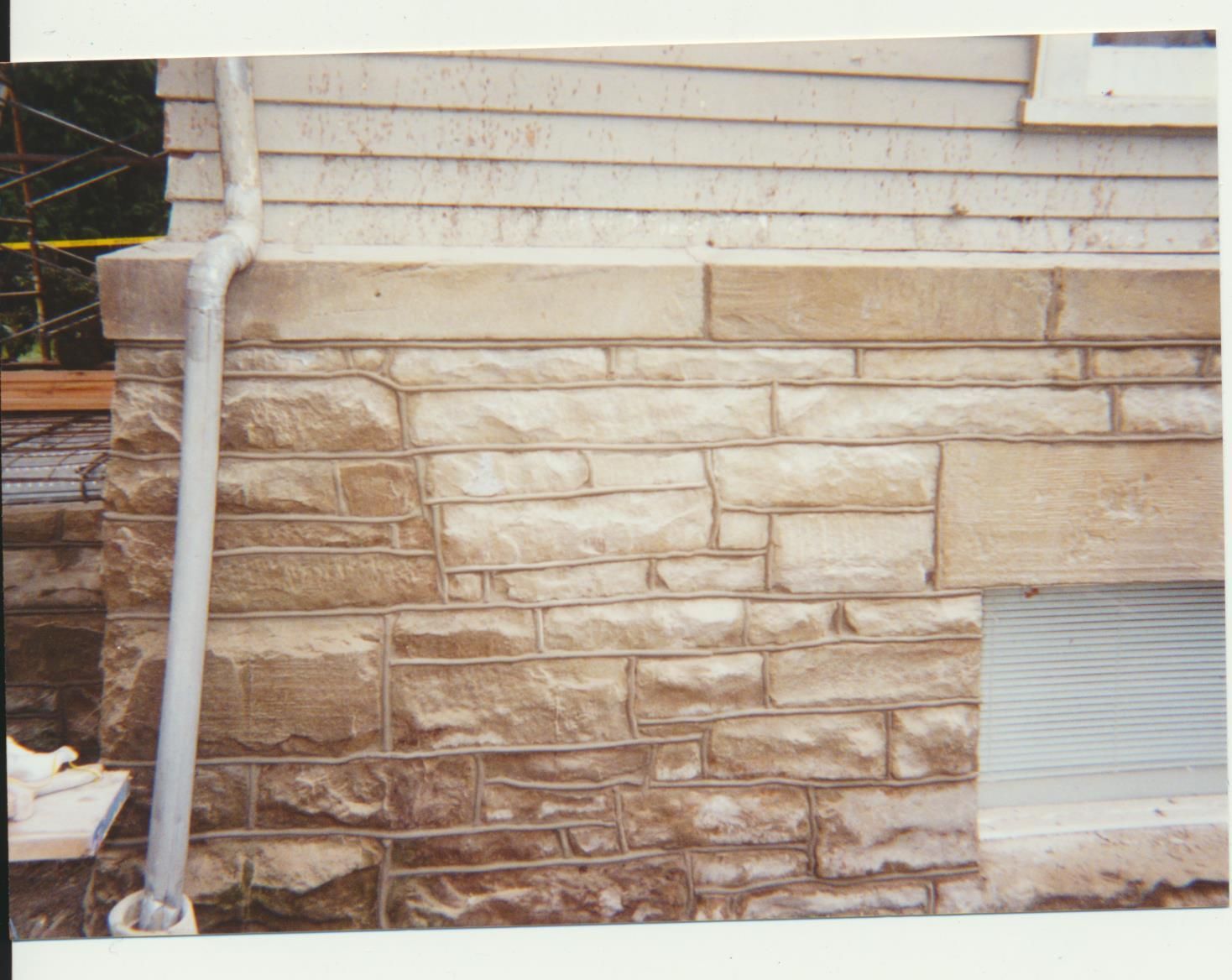 Photograph. 4 3/ 4 x 3 1/2 color. Schmidt House restoration done in December 2001. Photo by Vida Zvirzdys-Farler. View of stonework near back door.