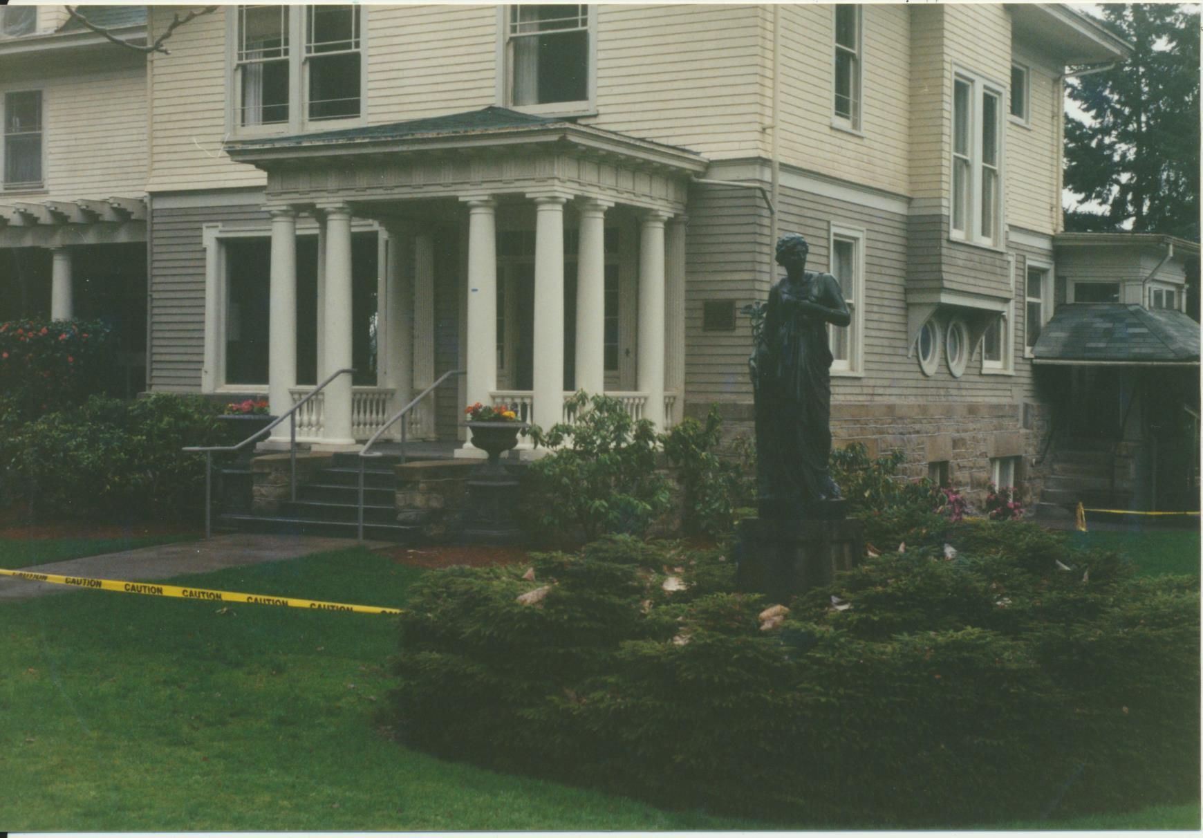 Photograph. 5 3/4 x 4 color. Schmidt House restoration done in 2001. Photo by Vida Zvirzdys-Farler. View of south side.