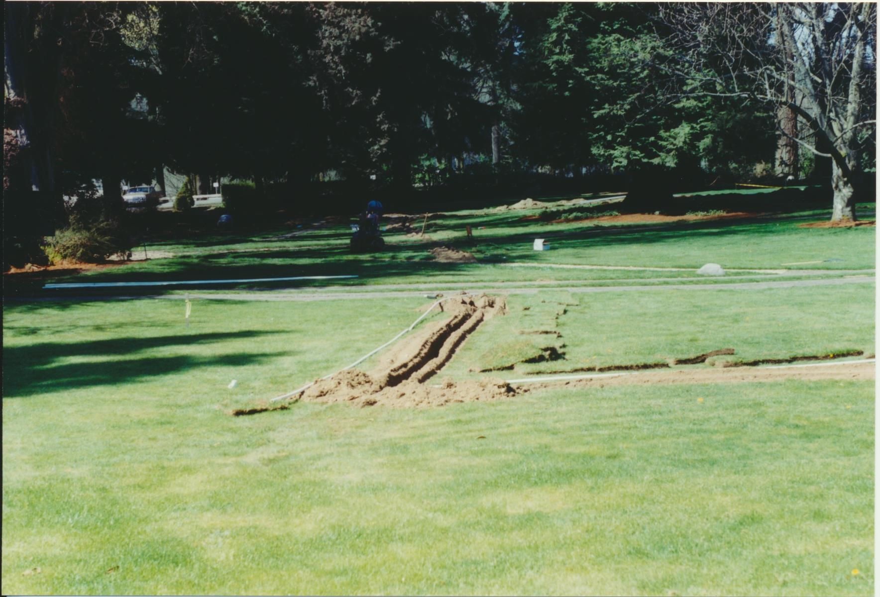 Photograph. 5 3/4 x 4 color. Schmidt House restoration done in 2001. Photo by Vida Zvirzdys-Farler. Installing underground lines.