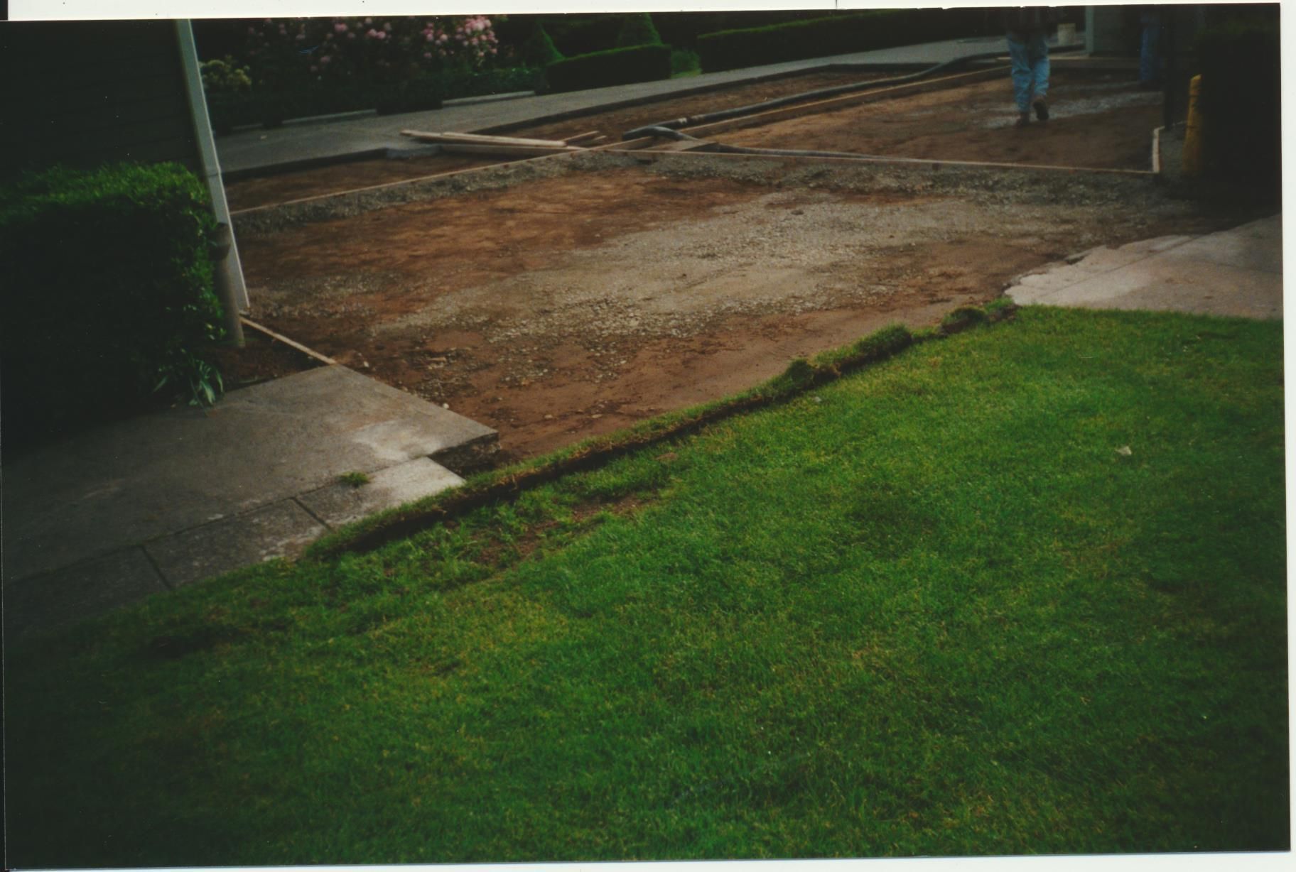 Photograph. 5 3/4 x 4 color. Schmidt House restoration done in 2001. Photo by Vida Zvirzdys-Farler. Installing new concrete carport.