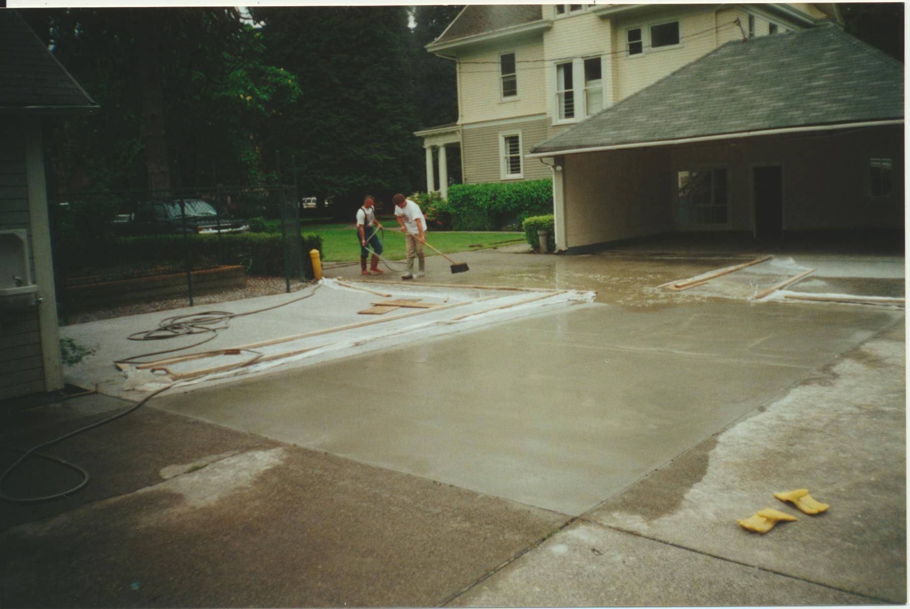 Photograph. 5 3/4 x 4 color. Schmidt House restoration done in 2001. Photo by Vida Zvirzdys-Farler. Installing new concrete carport.