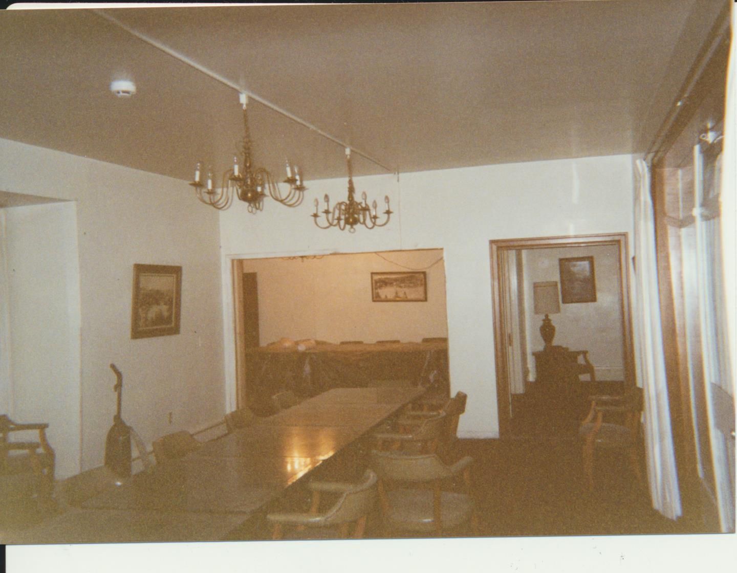 Photograph. 4 3/4 x 3 1/2 color. Schmidt House restoration done in 2001. Photo by Vida Zvirzdys-Farler. Wall additions in front/dining rooms.