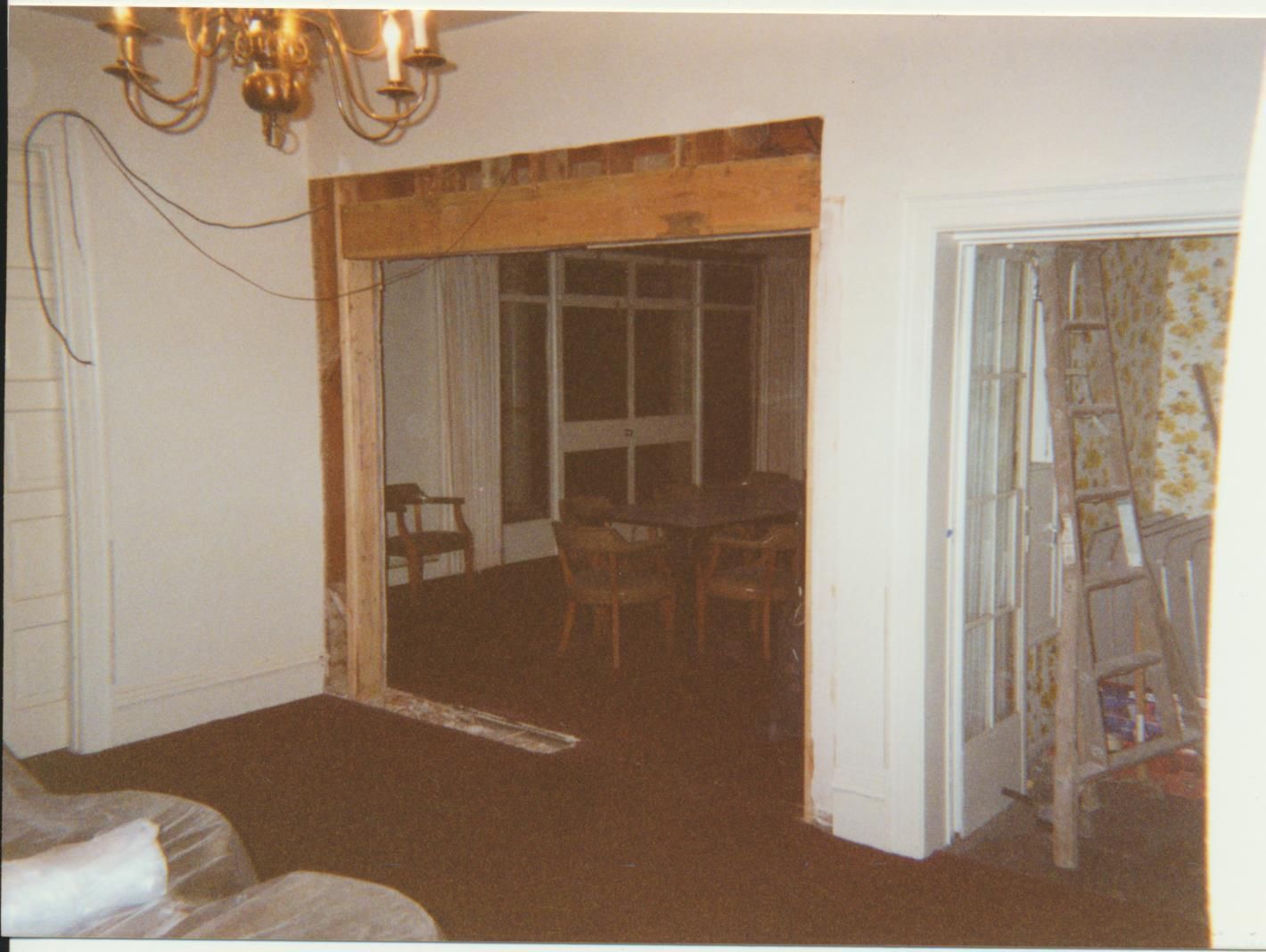 Photograph. 4 3/4 x 3 1/2 color. Schmidt House restoration done in 2001. Photo by Vida Zvirzdys-Farler. Wall additions in front/dining rooms.
