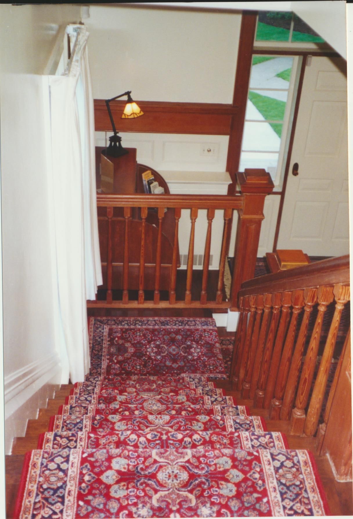 Photograph. 5 3/4 x 4 color. Schmidt House restoration done in 2001. Photo by Vida Zvirzdys-Farler. Front staircase work.
