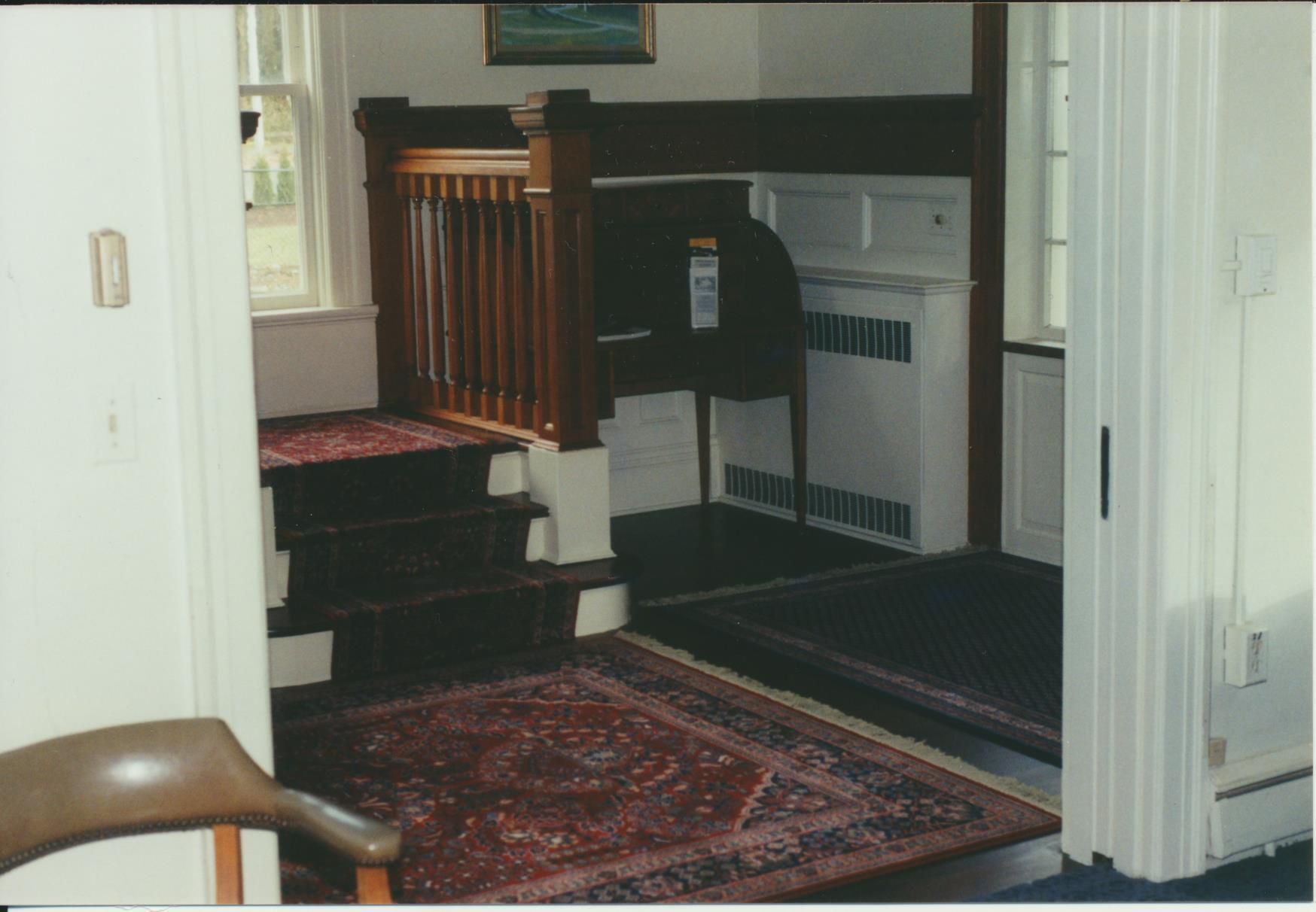Photograph. 5 3/4 x 4 color. Schmidt House restoration done in 2001. Photo by Vida Zvirzdys-Farler. Front hall.