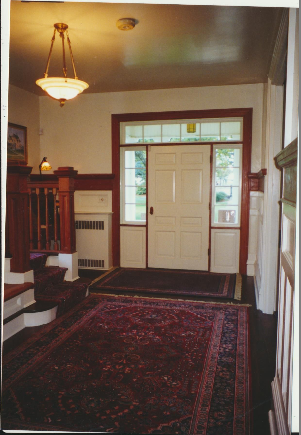 Photograph. 5 3/4 x 4 color. Schmidt House restoration done in 2001. Photo by Vida Zvirzdys-Farler. Front hall.