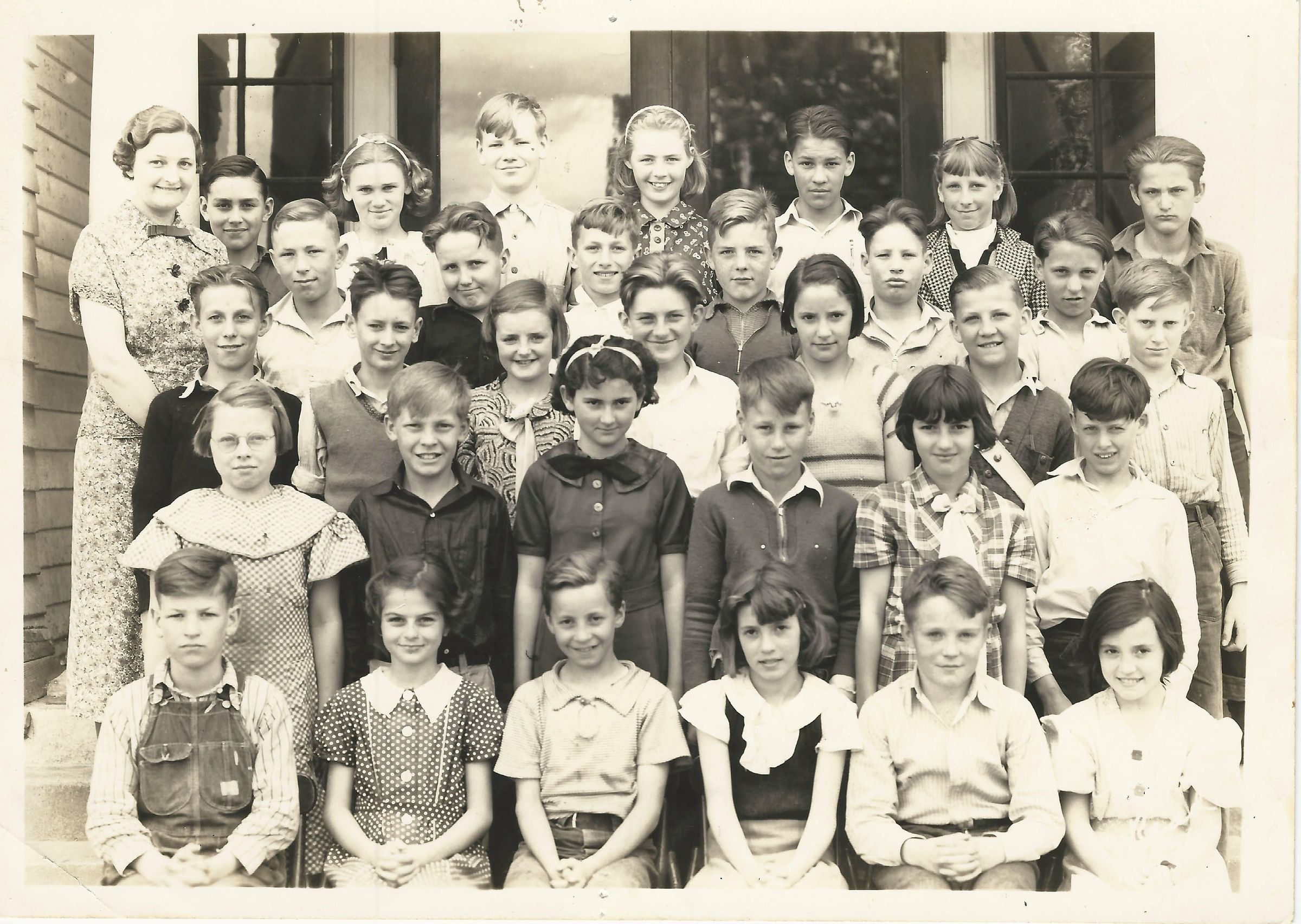 Print, photographic. 7 x 5 b&w. Photo of unknown class, no year given, at Tumwater grade school. Five rows of boys and girls in front of school. Teacher is Louisa H. Morrissey. Students unidentified.Name/Title