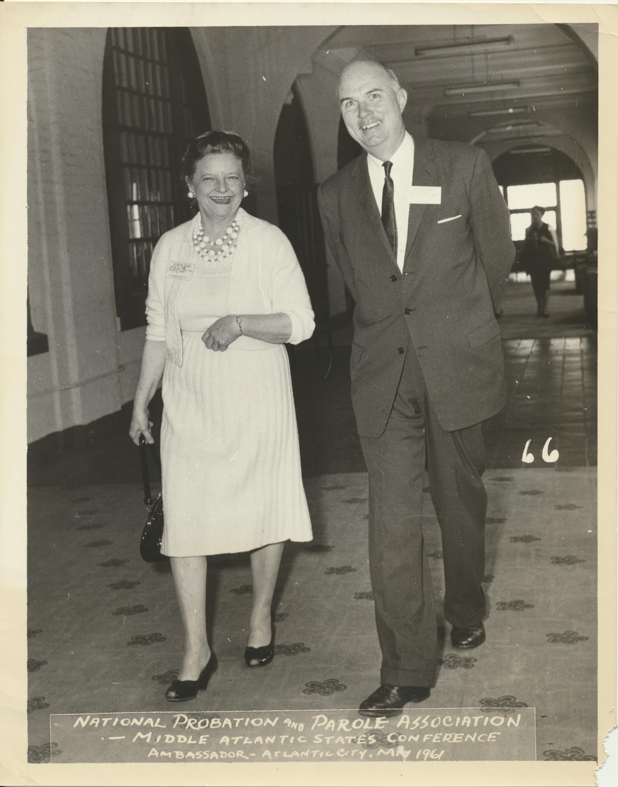 Print, photographic. 7 x 9 b&w . Image of Helen Shank and unidentified man at National Probation and Parole Association, Middle Atlantic States Conference, Ambassador, Atlantic City [NJ], May 1961.