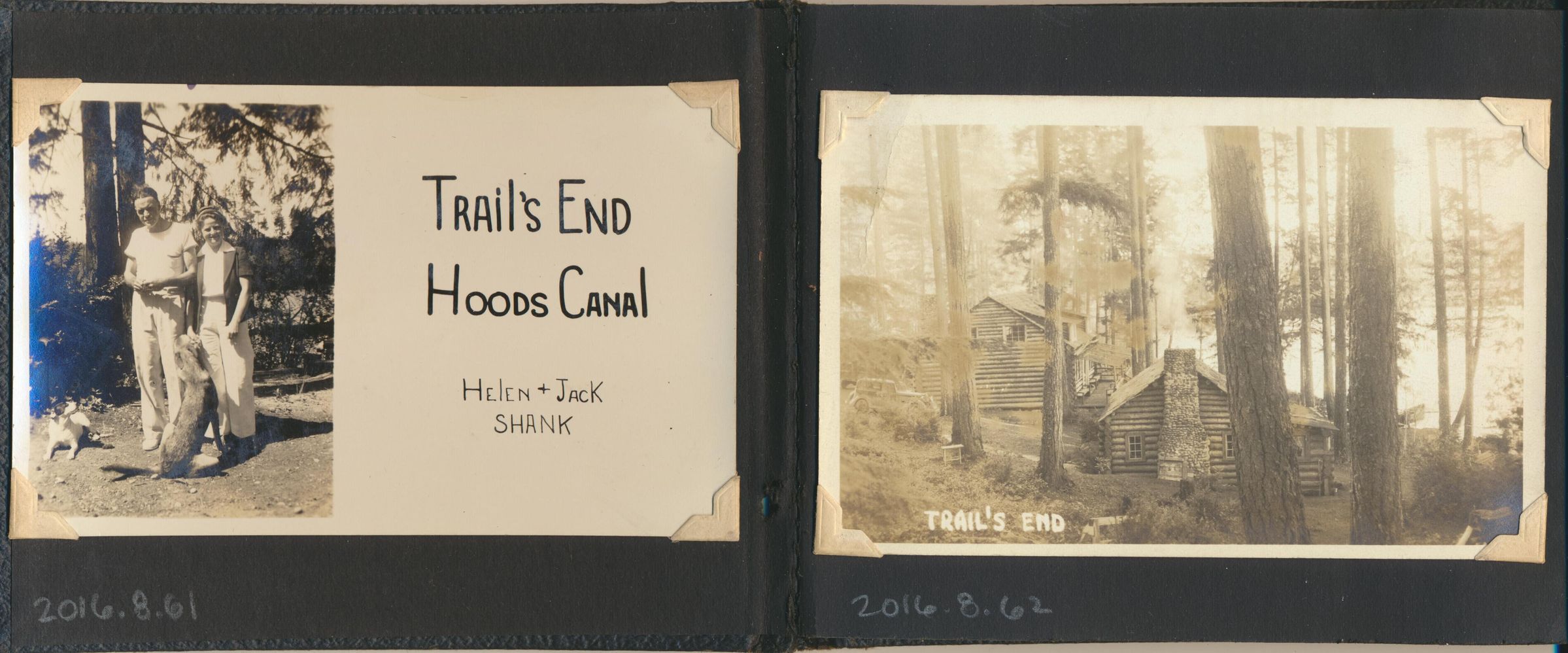 Part of small black photo album; all photos are of Trail's End camp on Hood Canal.