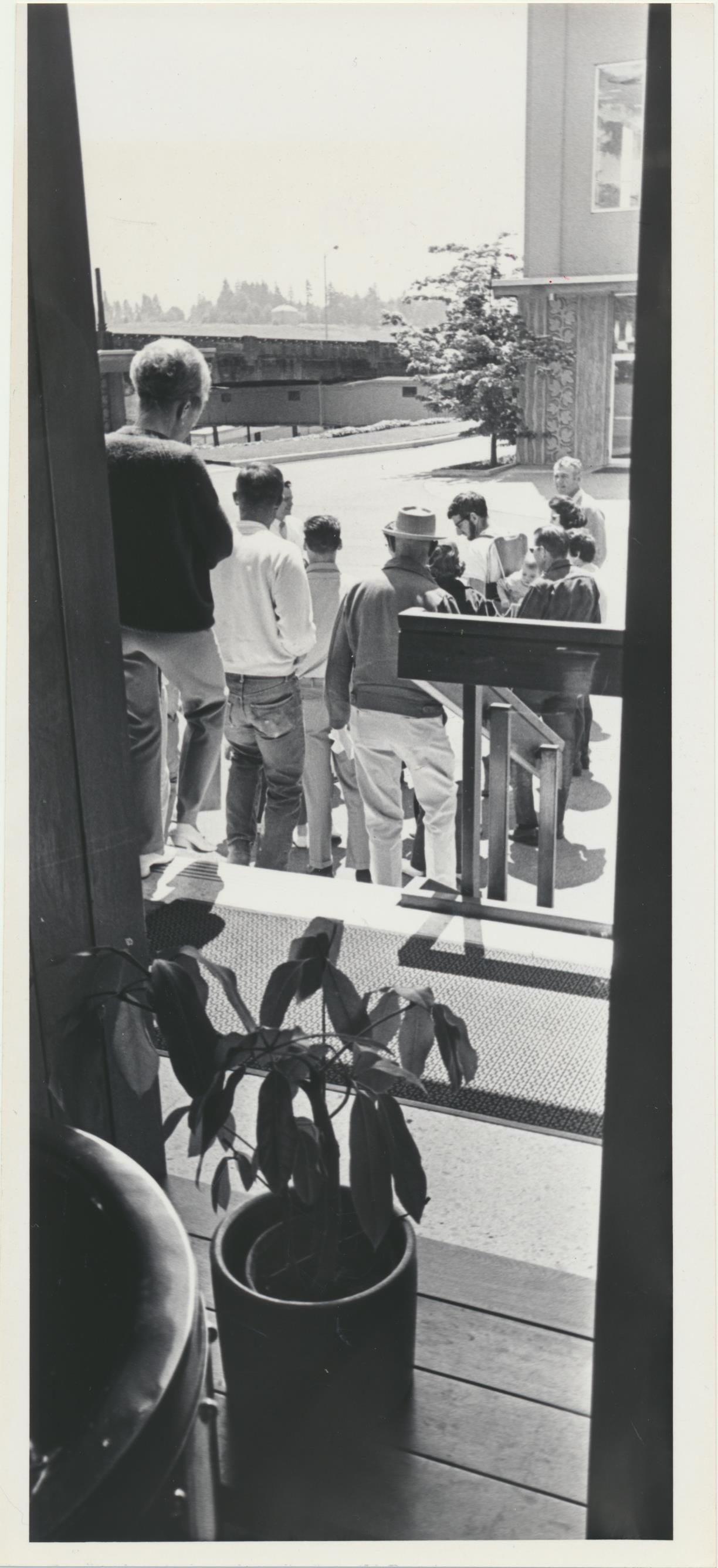 Photograph. B&W. Size 4 x 9. 1971 Photograph of group on a tour of the brewery. Date stamped May 28, 1971.
