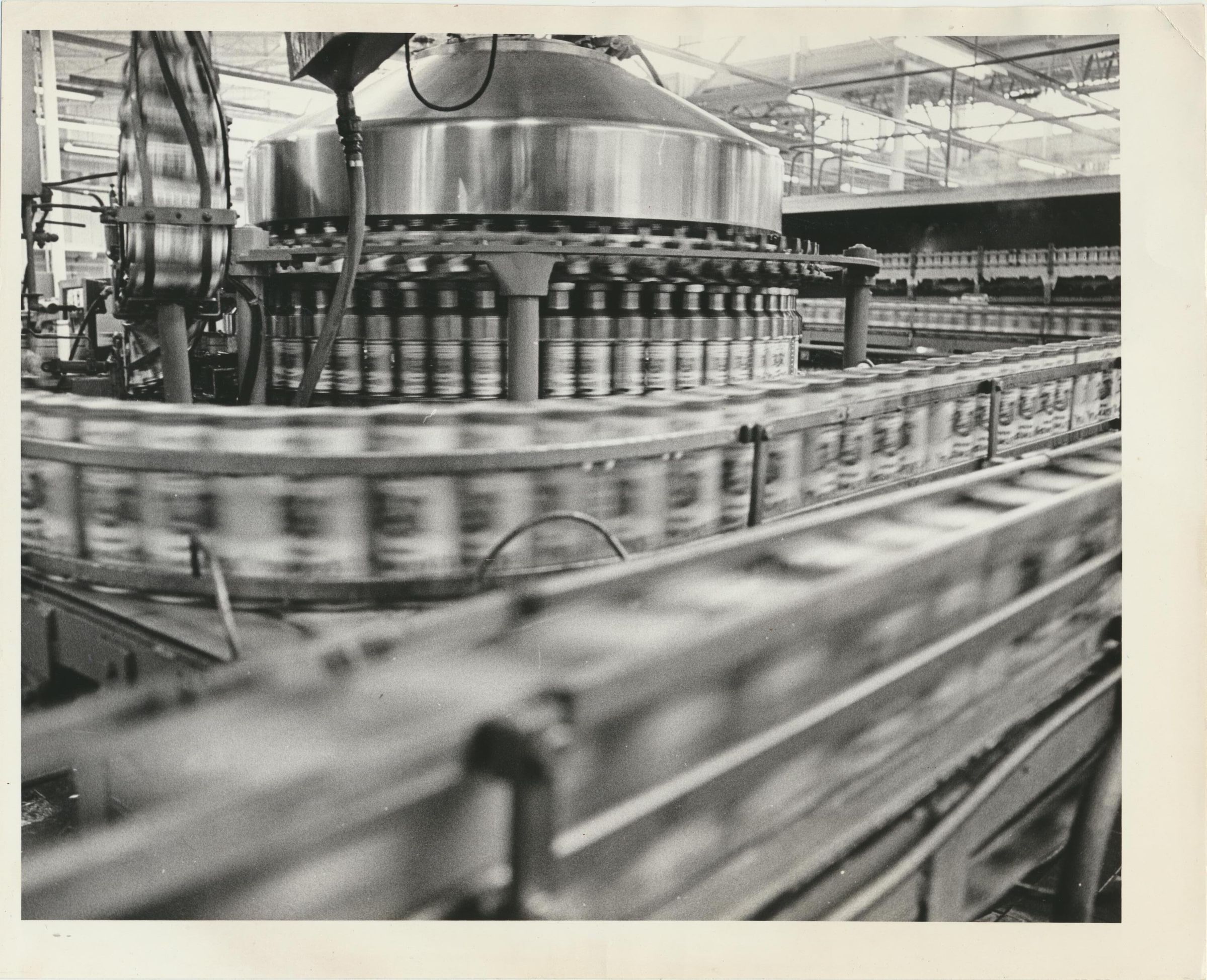 Photograph. B&W. Size 8 x 10. 1971 Photograph of moving canning line. Date stamped May 28, 1971.