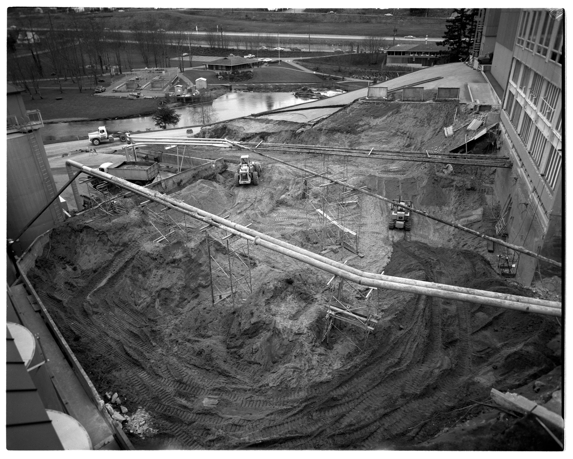 Negative, sheet film. 4 x 5 b&w. No. 6730. Geller & Hanson. Progress Pix Brewery. C brewhouse under construction.