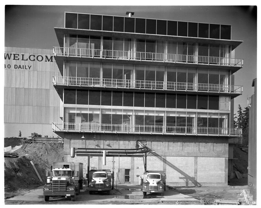 Negative, sheet film. 4 x 5 b&w. No. 6716. Olympia Brewery. C brewhouse under construction.