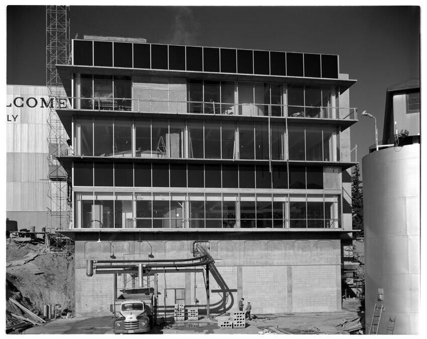 Negative, sheet film. 4 x 5 b&w. No. 6716. Olympia Brewery. C brewhouse under construction.