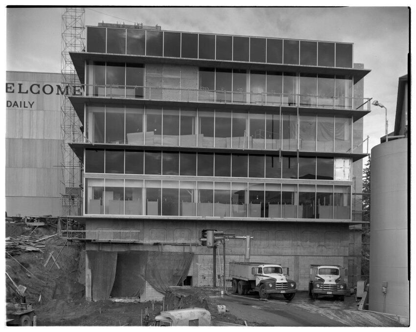 Negative, sheet film. 4 x 5 b&w. No. 6716. Brewery. C brewhouse under construction.