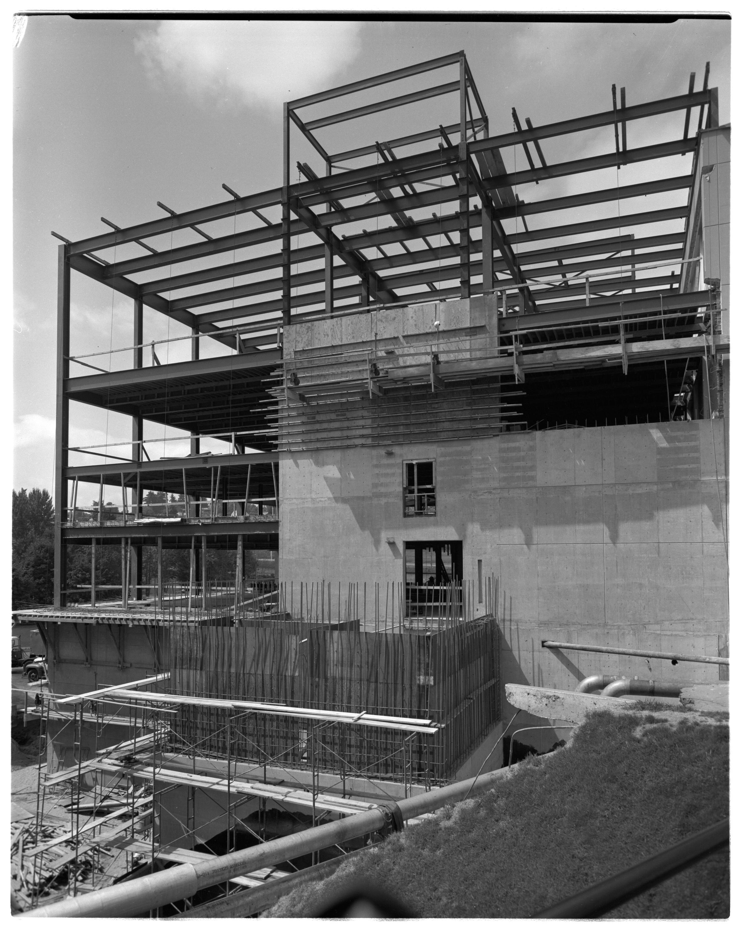 Negative, sheet film. 5 x 4 b&w. No. 6716. Olympia Brewery. C brewhouse under construction.