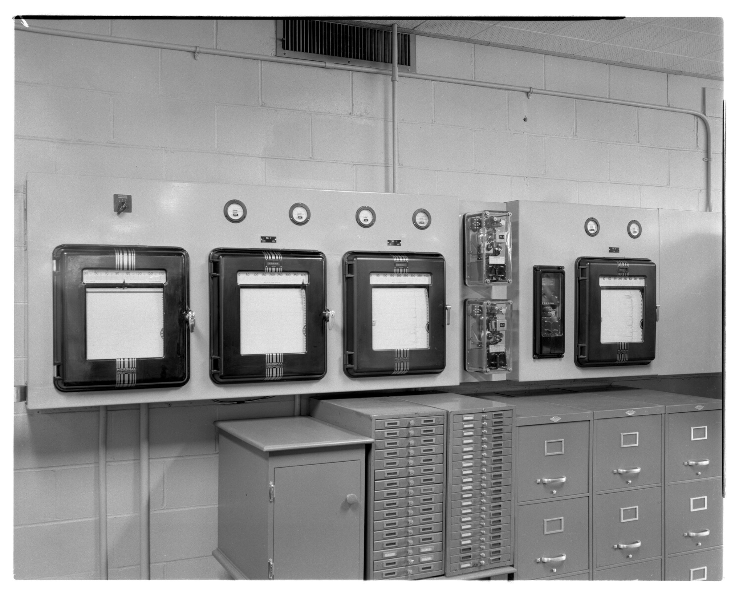 Negative, sheet film. 4 x 5 b&w. No. 2644C. Olympia Brew Co. Ordered 08/19/1954. Equipment monitoring pasteurizer temperatures.