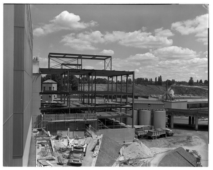 Negative, sheet film. 4 x 5 b&w. No. 6716. Brewing Prog. Construction of C brewhouse.