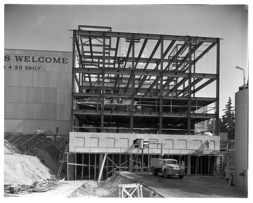 Negative, sheet film. 4 x 5 b&w. No. 6716. Brewing Prog. Construction of C brewhouse.